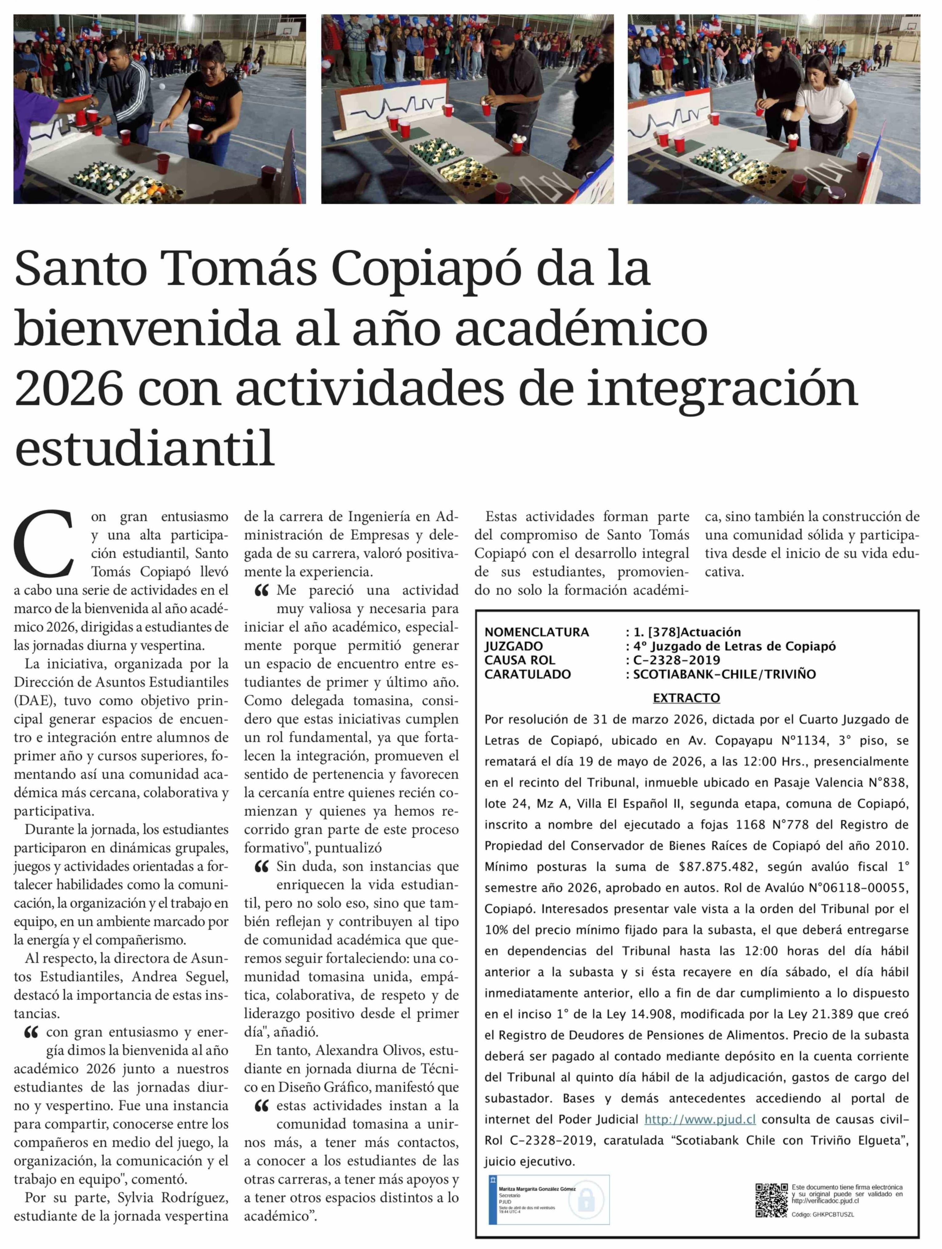 Santo Tomás Copiapó da la bienvenida al año académico 2026 con actividades de integración estudiantil