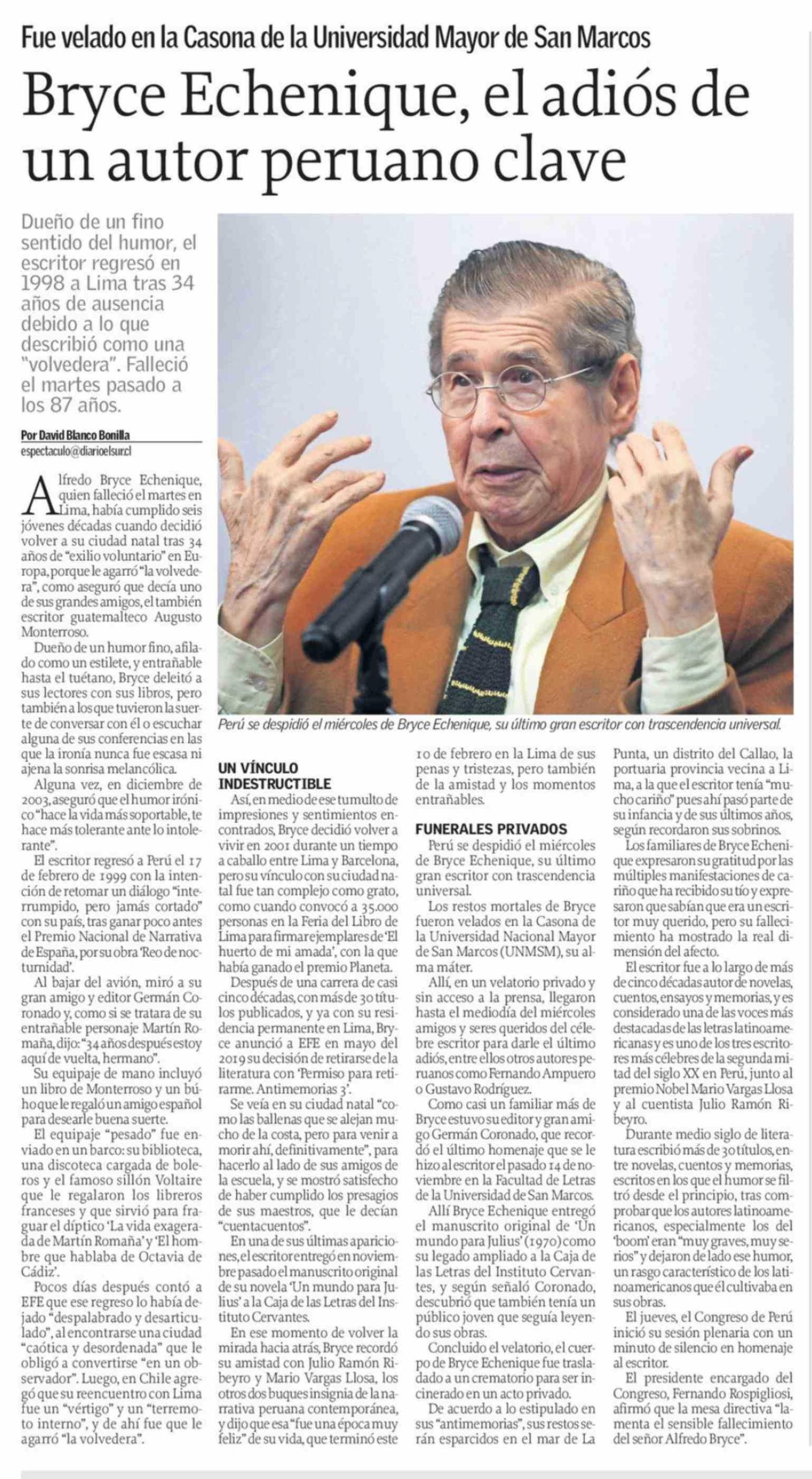 Bryce Echenique, el adiós de un autor peruano clave