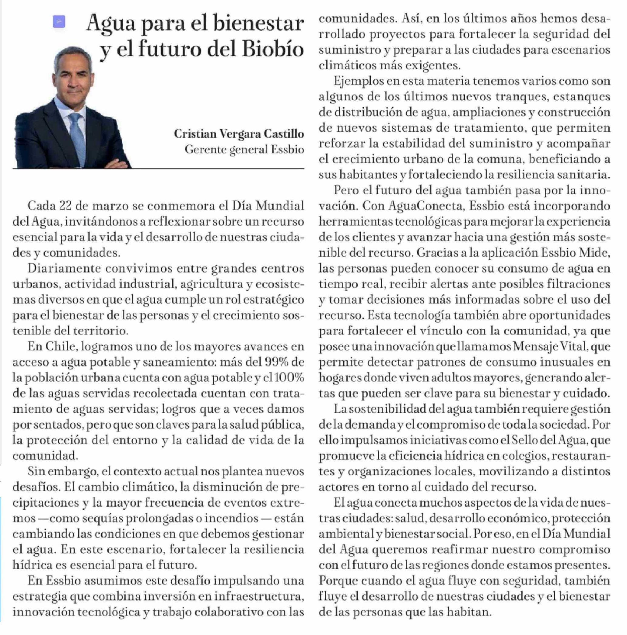 Columnas de Opinión: Agua para el bienestar y el futuro del Biobío