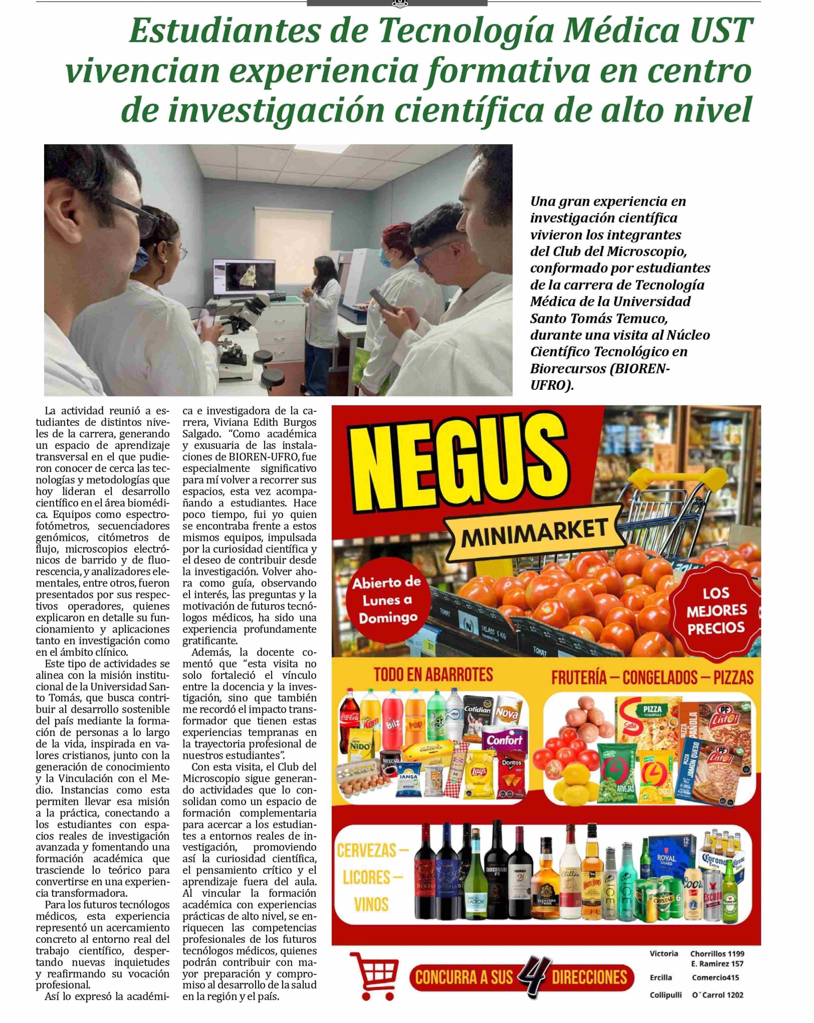 Estudiantes de Tecnologia Médica UST vivencian experiencia formativa en centro de investigación científica de alto nivel