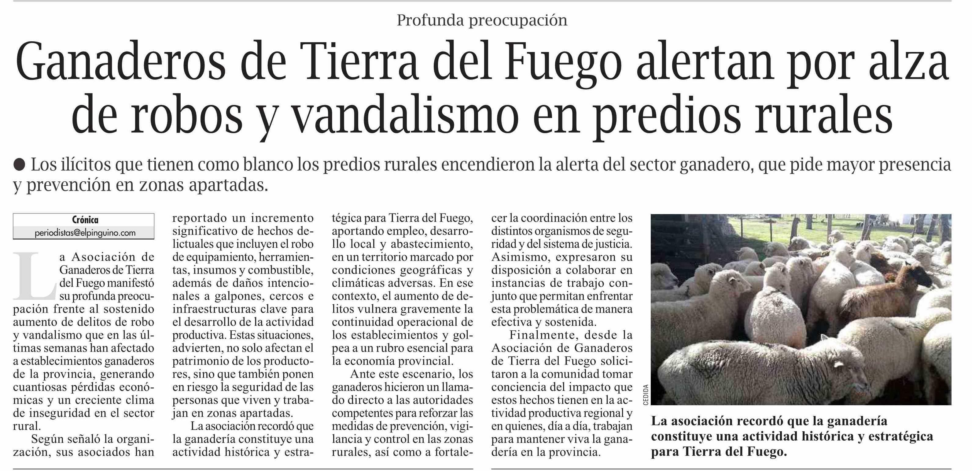 Ganaderos de Tierra del Fuego alertan por alza de robos y vandalismo en predios rurales