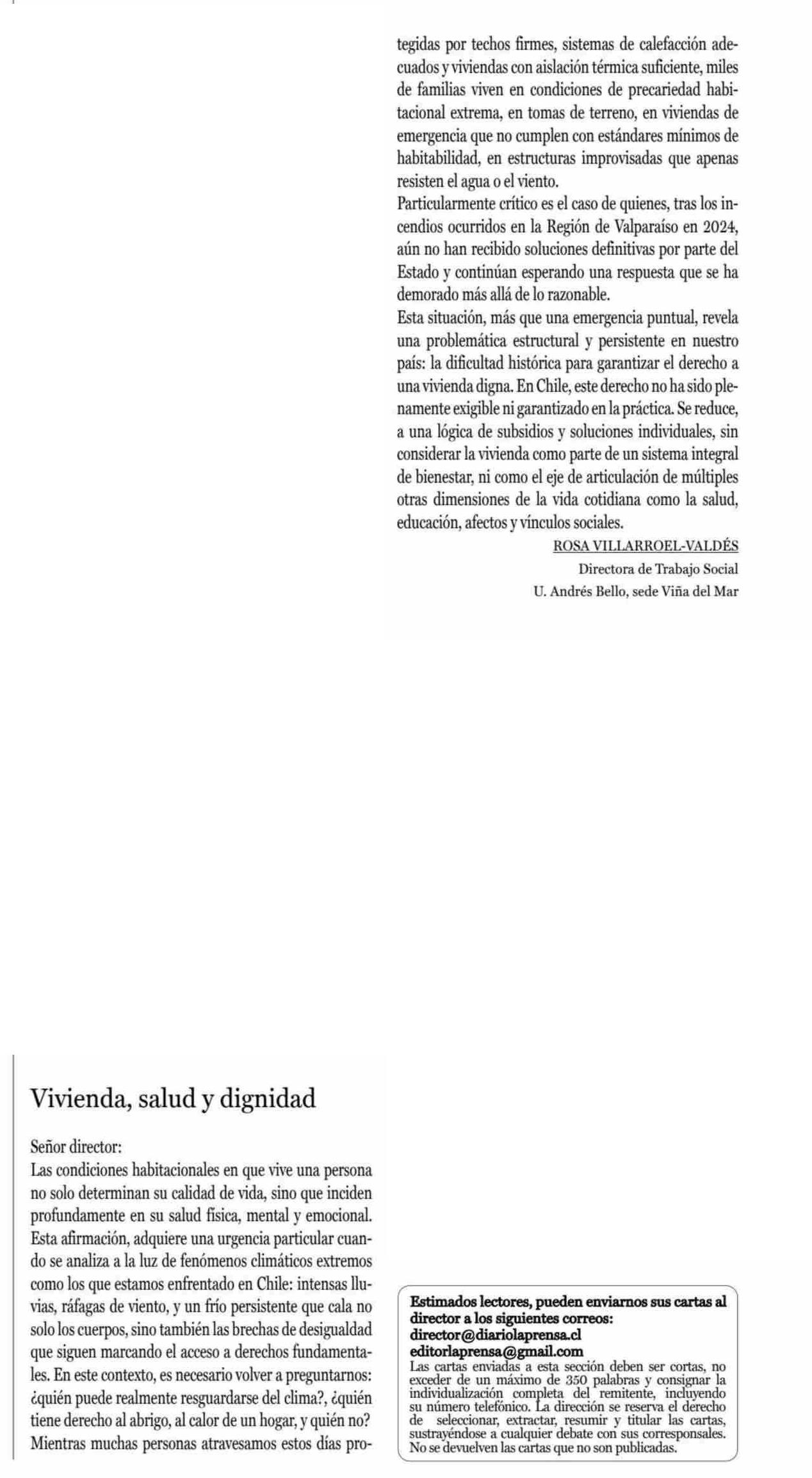 CARTAS: Vivienda, salud y dignidad
