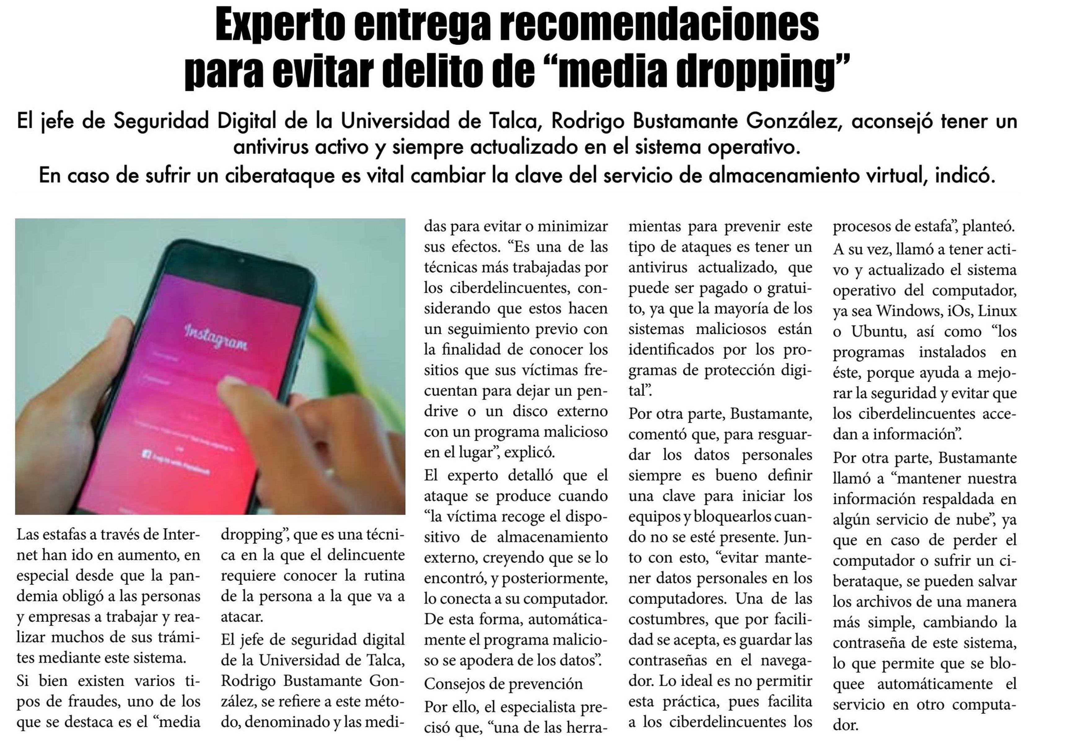 Experto entrega recomendaciones para evitar delito de "media dropping"