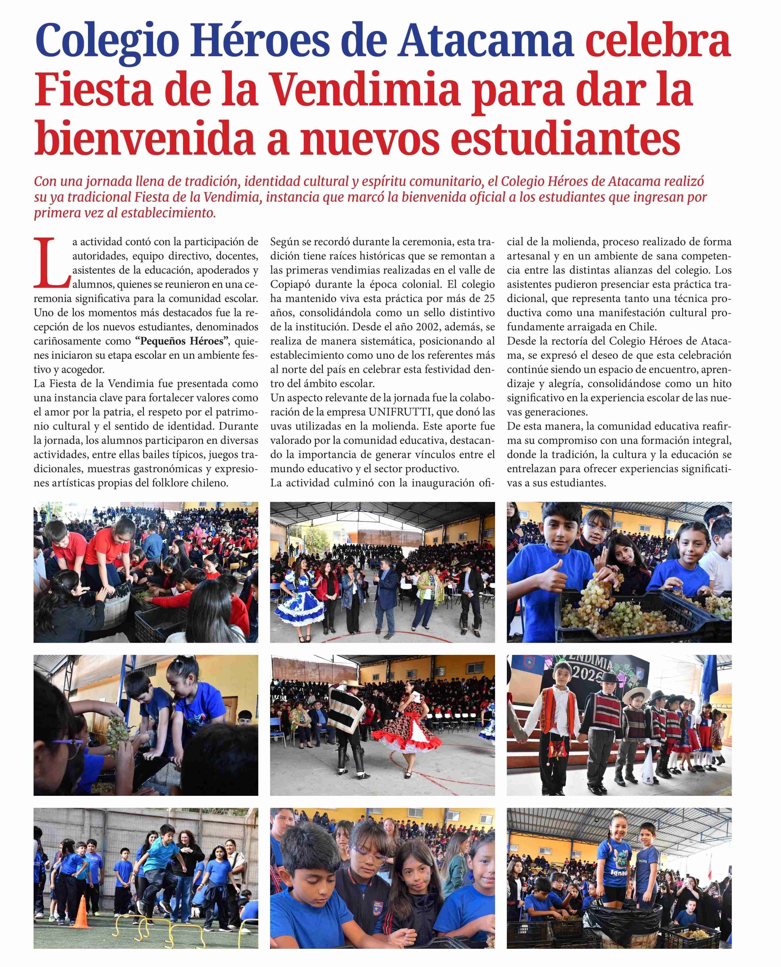 Colegio Héroes de Atacama celebra Fiesta de la Vendimia para dar la bienvenida a nuevos estudiantes