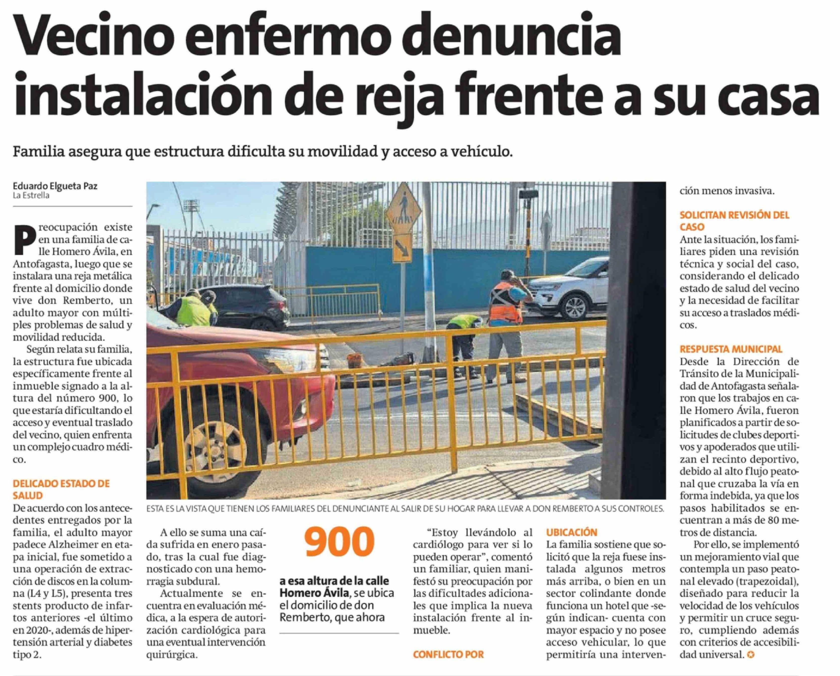 Vecino enfermo denuncia instalación de reja frente a su casa