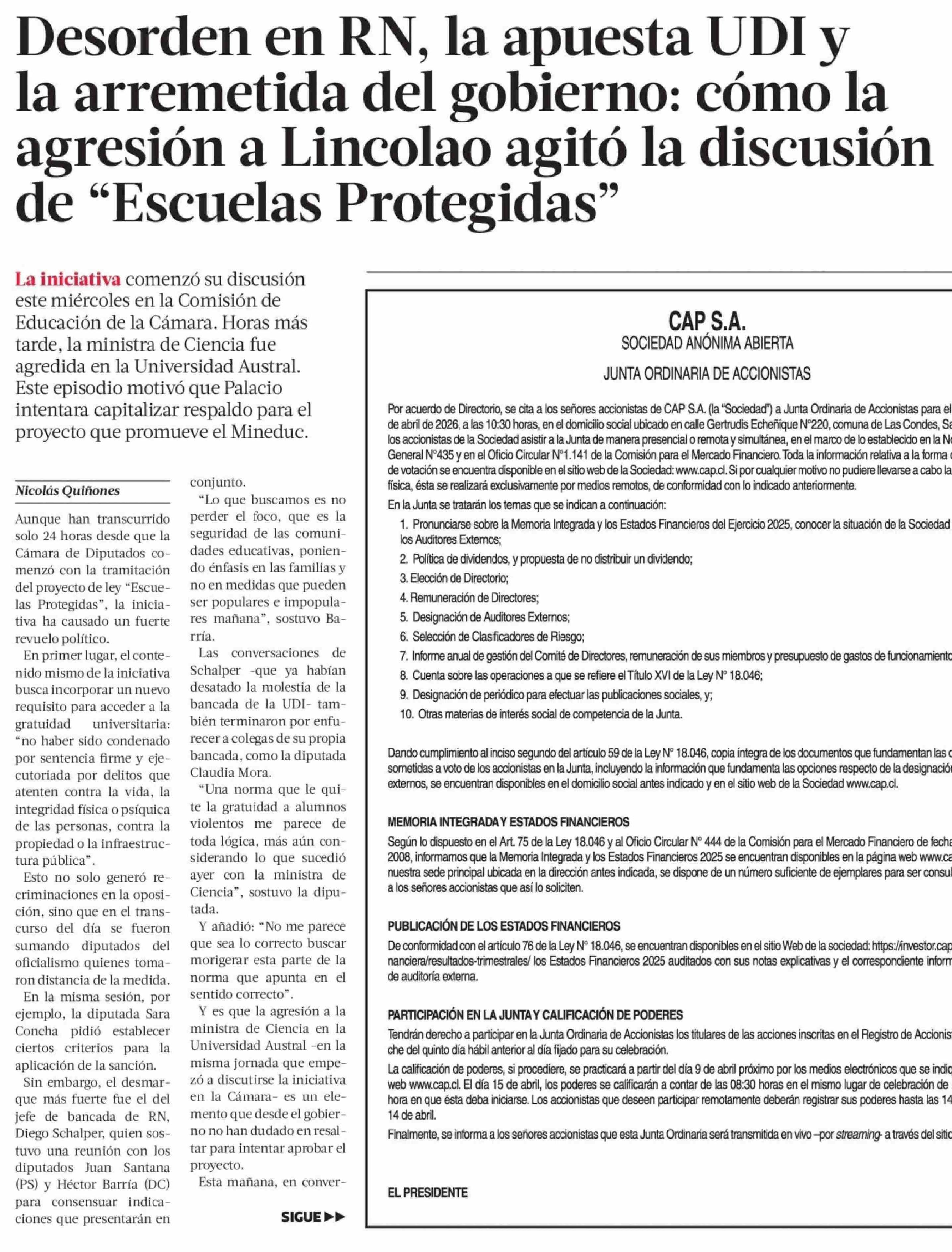Fuente: La Tercera (La Tercera) Página(s): 11-12