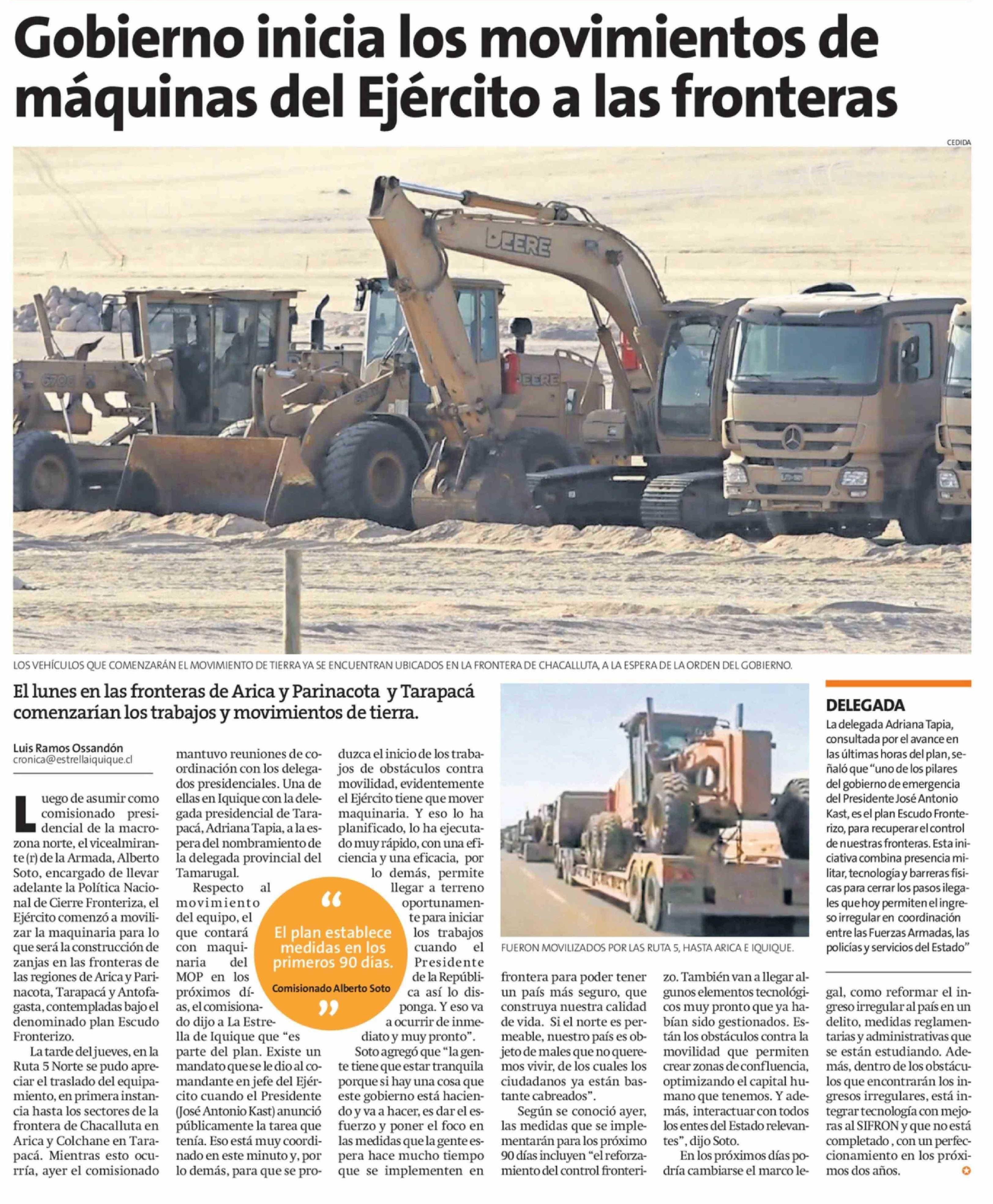 Gobierno inicia los movimientos de máquinas del Ejército a las fronteras