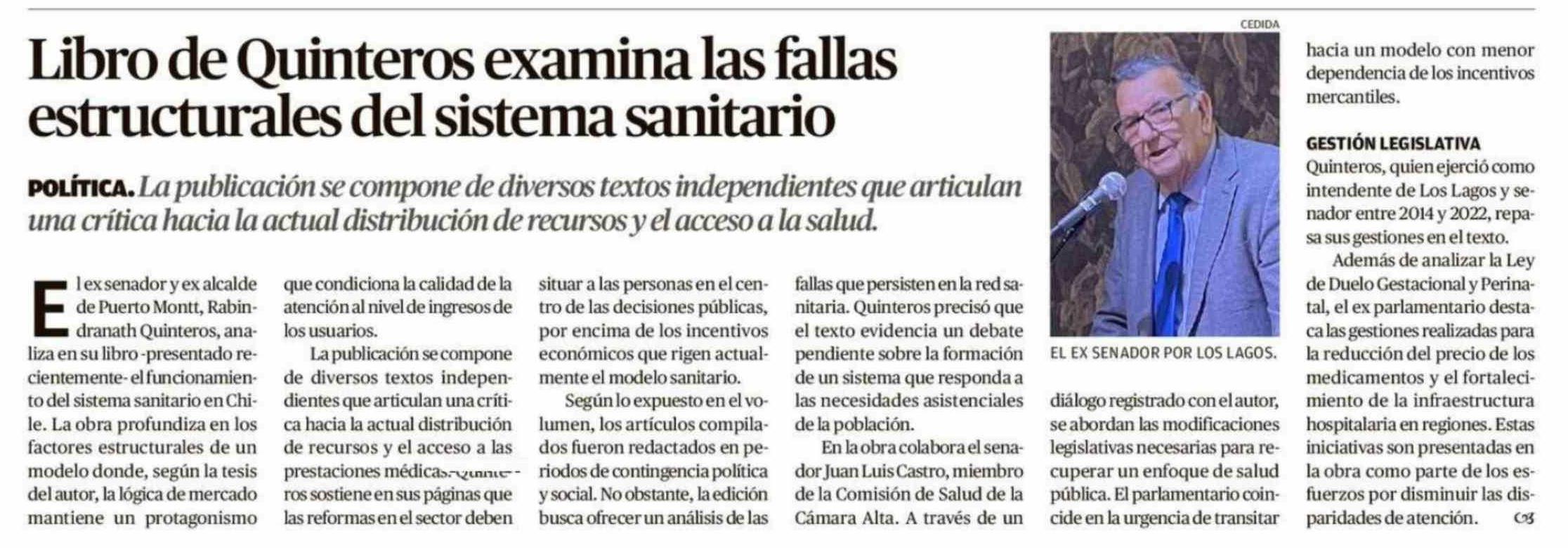 Libro de Quinteros examina las fallas estructurales del sistema sanitario