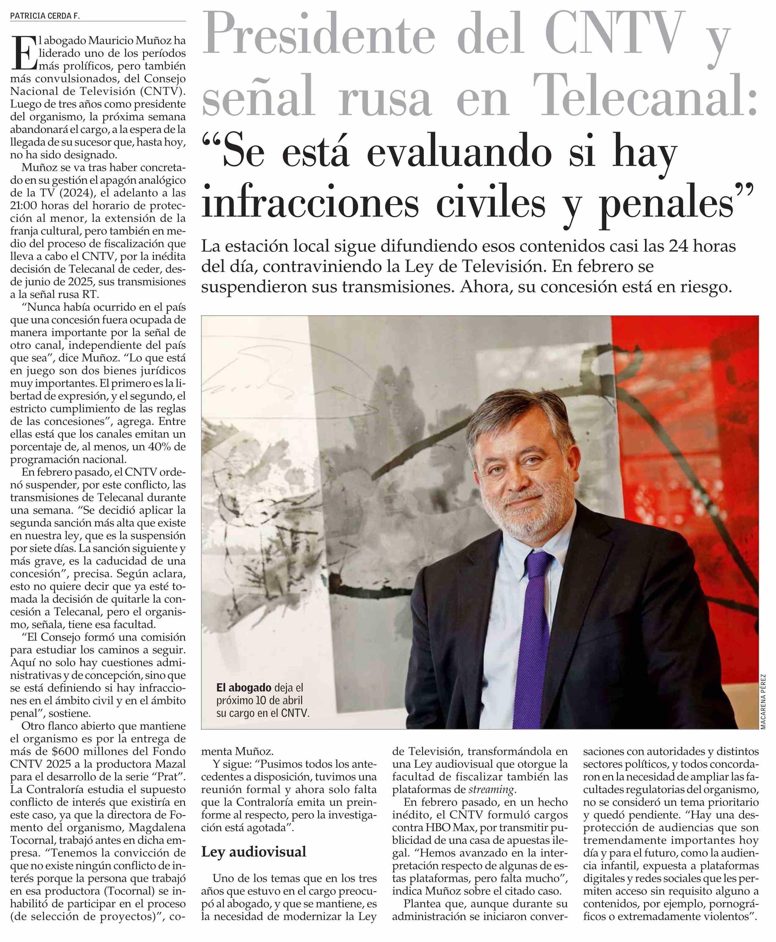 Presidente del CNTV y señal rusa en Telecanal: “Se está evaluando si hay infracciones civiles y penales”