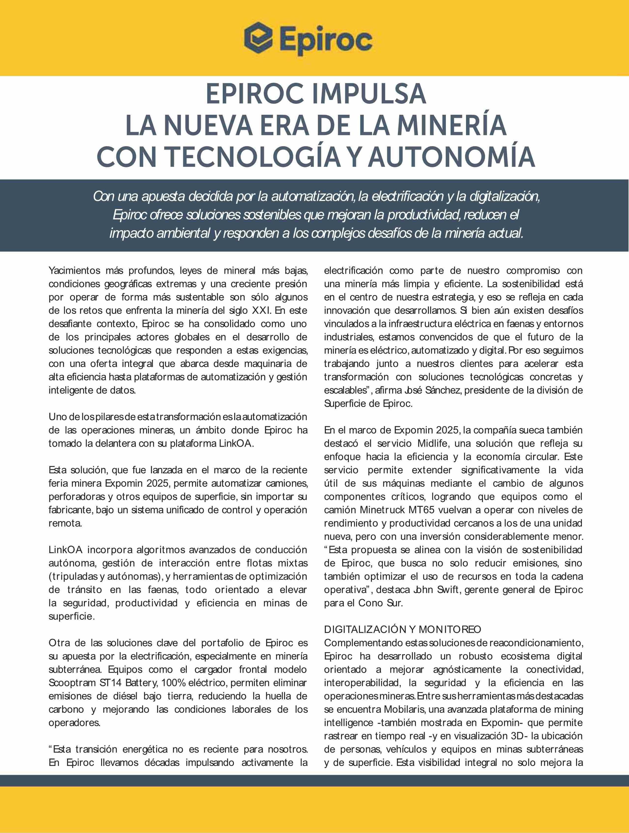 EPIROC IMPULSA LA NUEVA ERA DE LA MINERÍA CON TECNOLOGÍA Y AUTONOMÍA