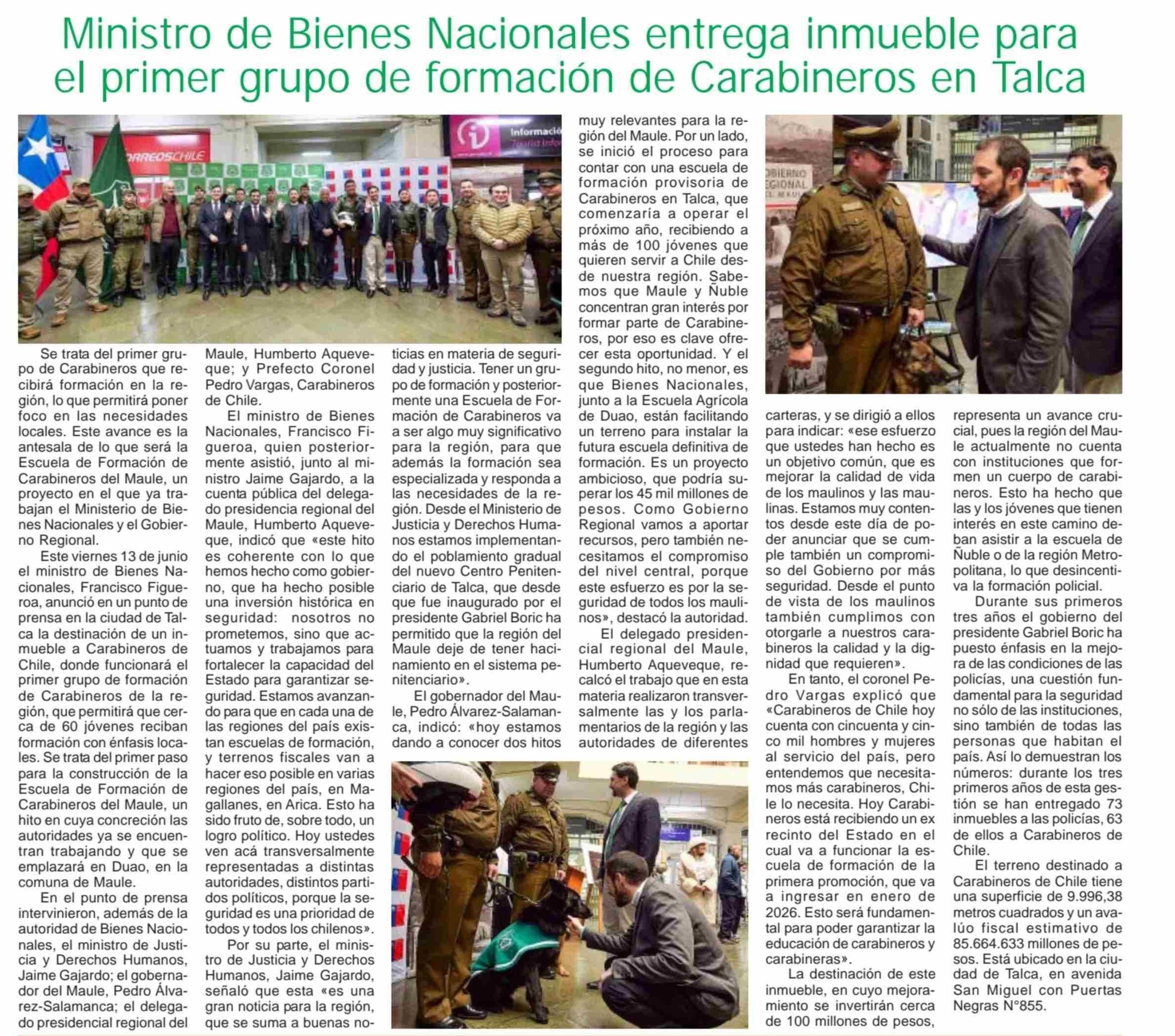 Ministro de Bienes Nacionales entrega inmueble para el primer grupo de formación de Carabineros en Talca