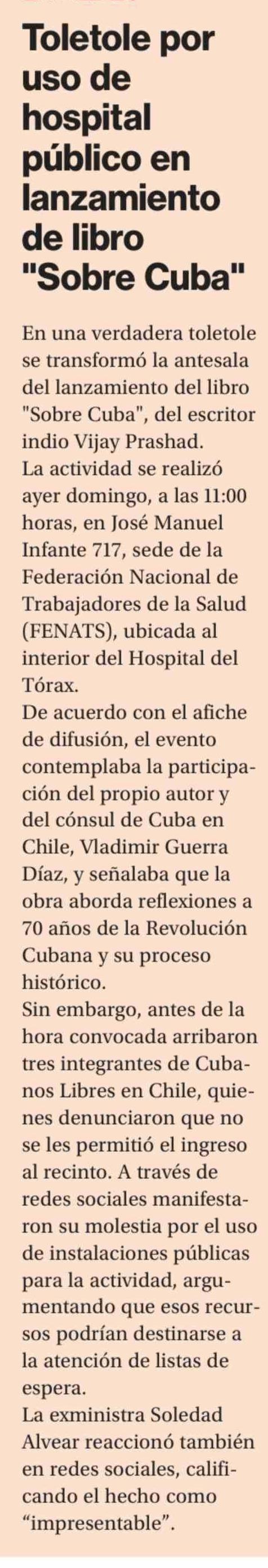 Toletole por uso de hospital público en lanzamiento de libro "Sobre Cuba"