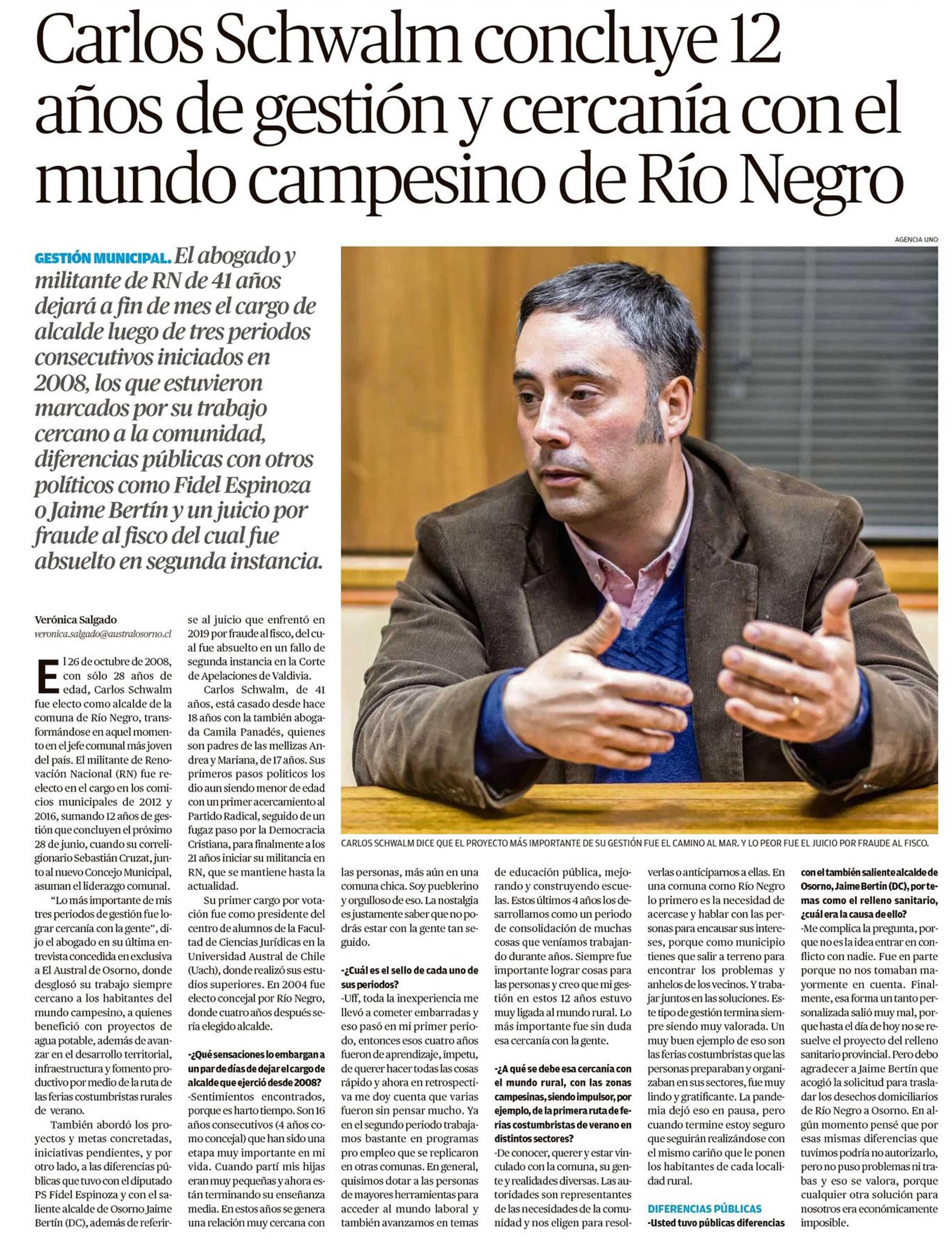 Carlos Schwalm concluye 12 años de gestión y cercanía con el mundo campesino de Río Negro