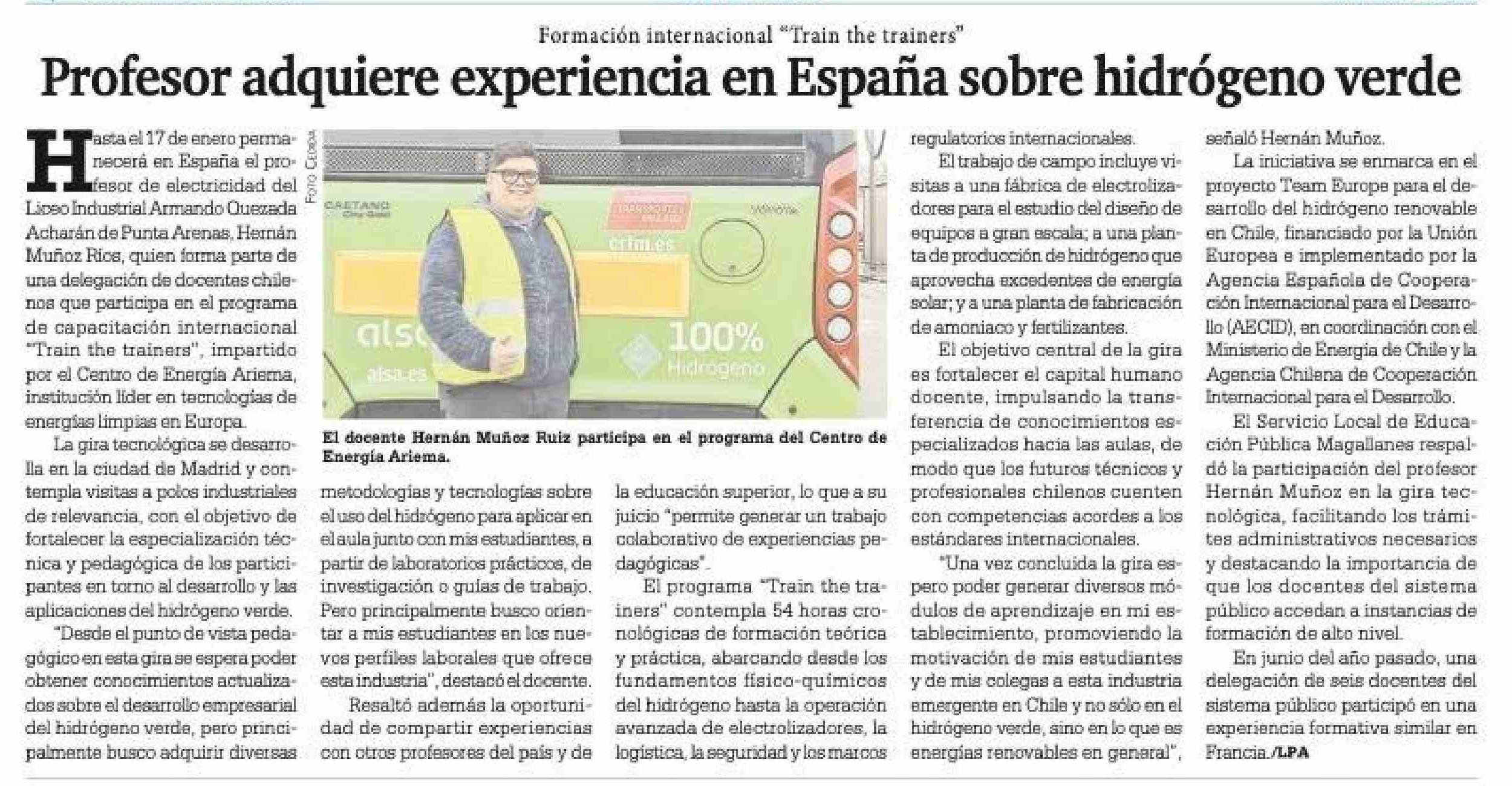 Profesor adquiere experiencia en España sobre hidrógeno verde