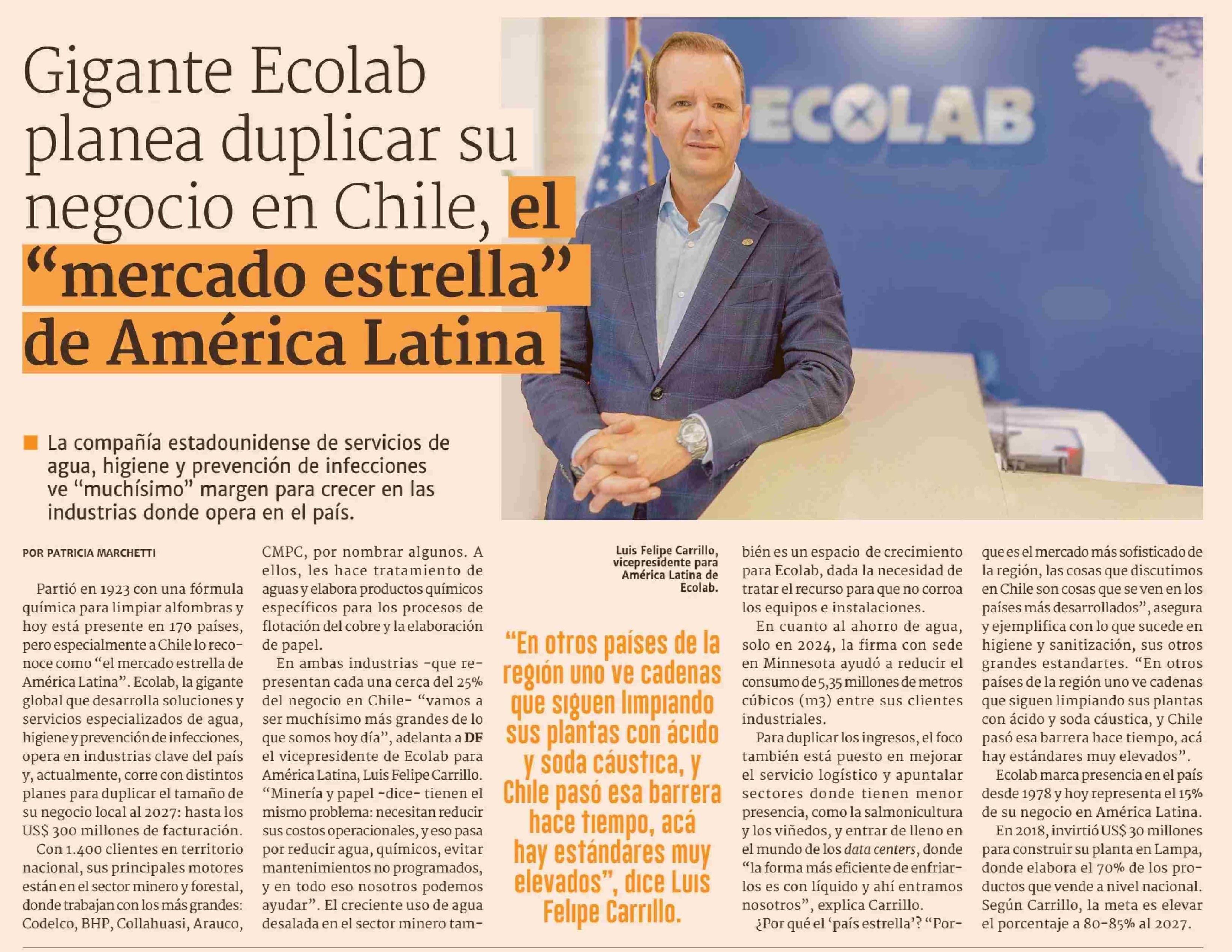 Gigante Ecolab planea duplicar su negocio en Chile, el “mercado estrella” de América Latina