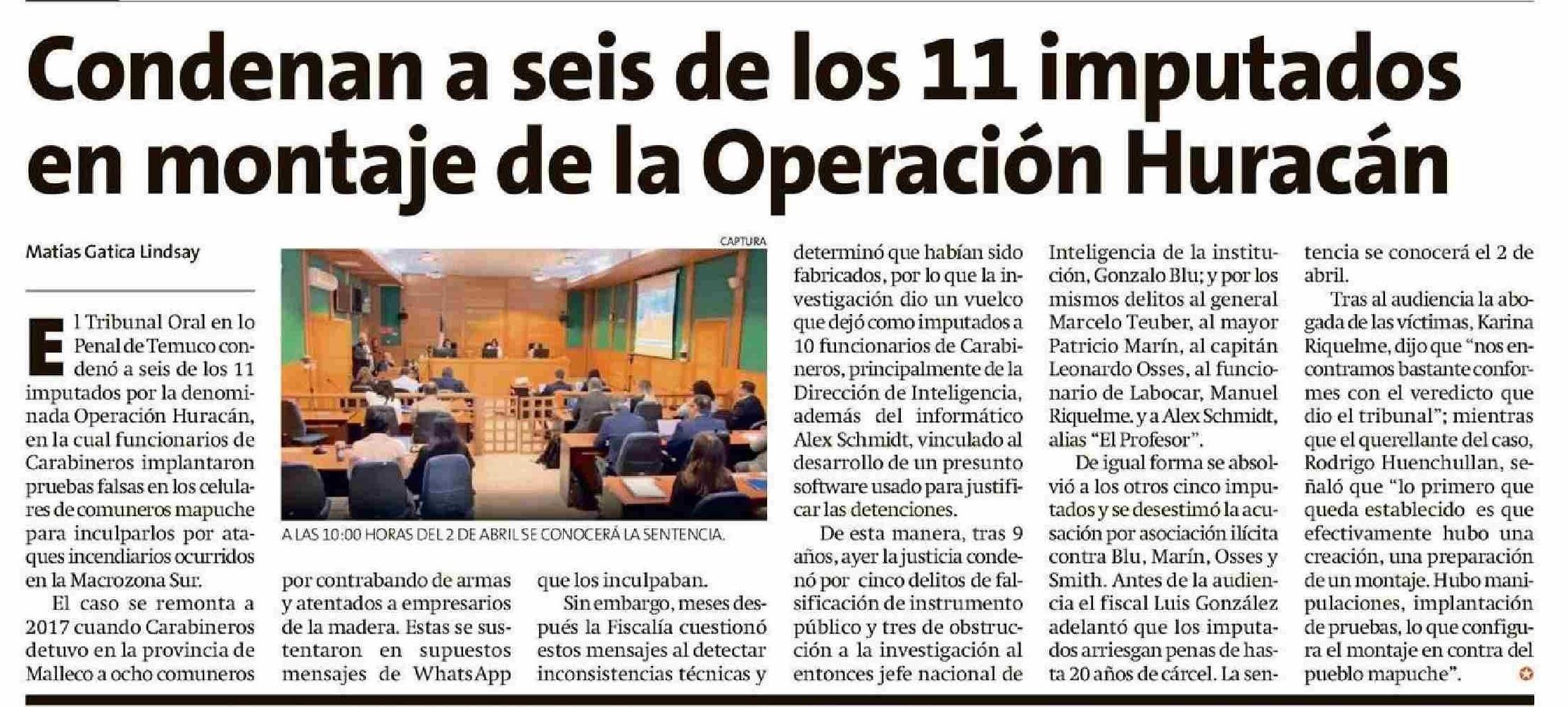 Condenan a seis de los 11 imputados en montaje de la Operación Huracán