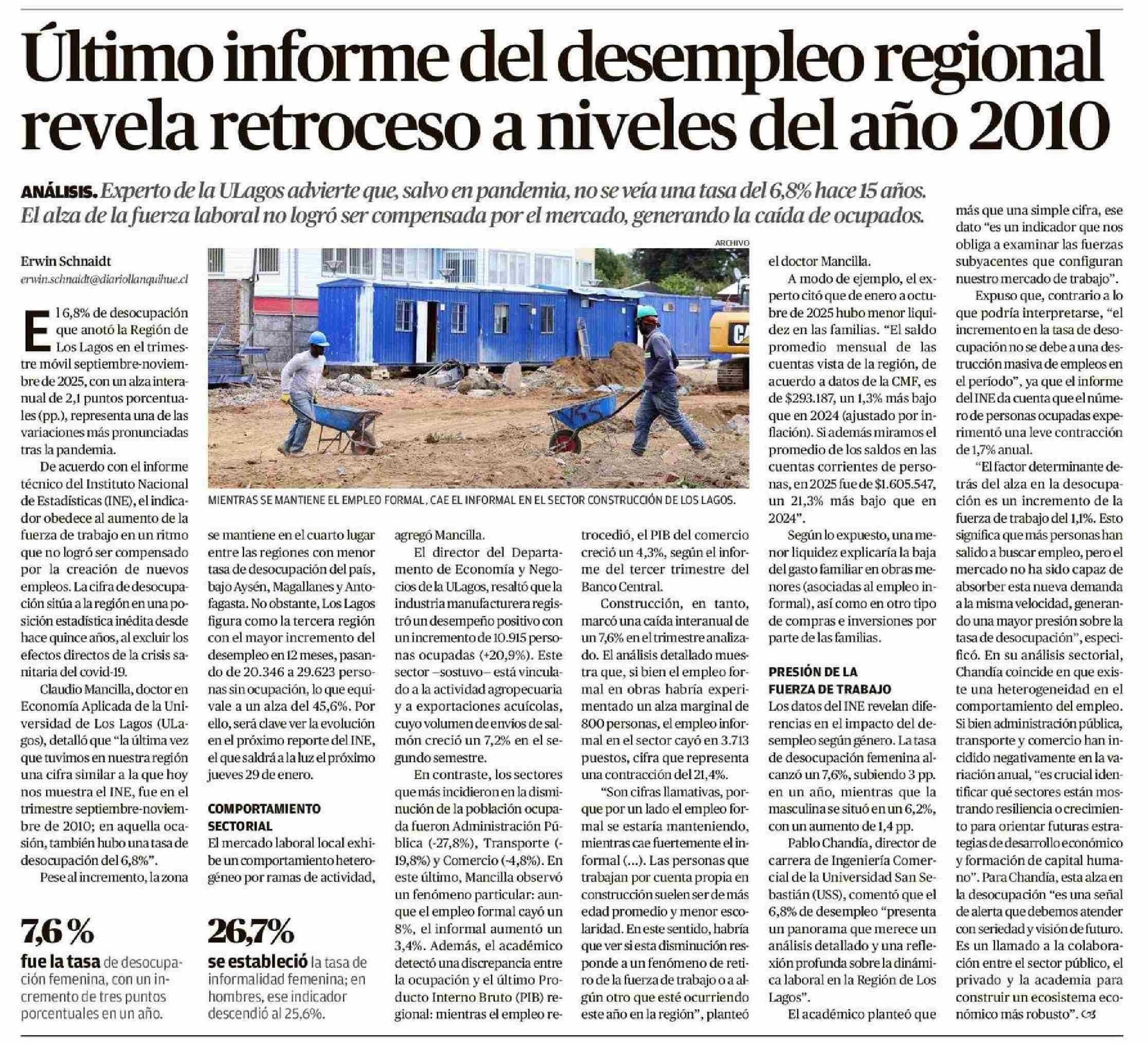 Último informe del desempleo regional revela retroceso a niveles del año 2010