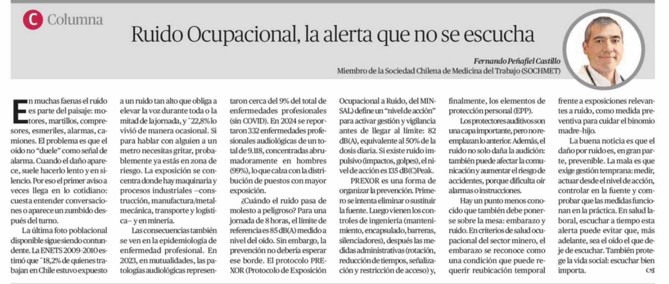 Columnas de Opinión: Ruido Ocupacional, la alerta que no se escucha