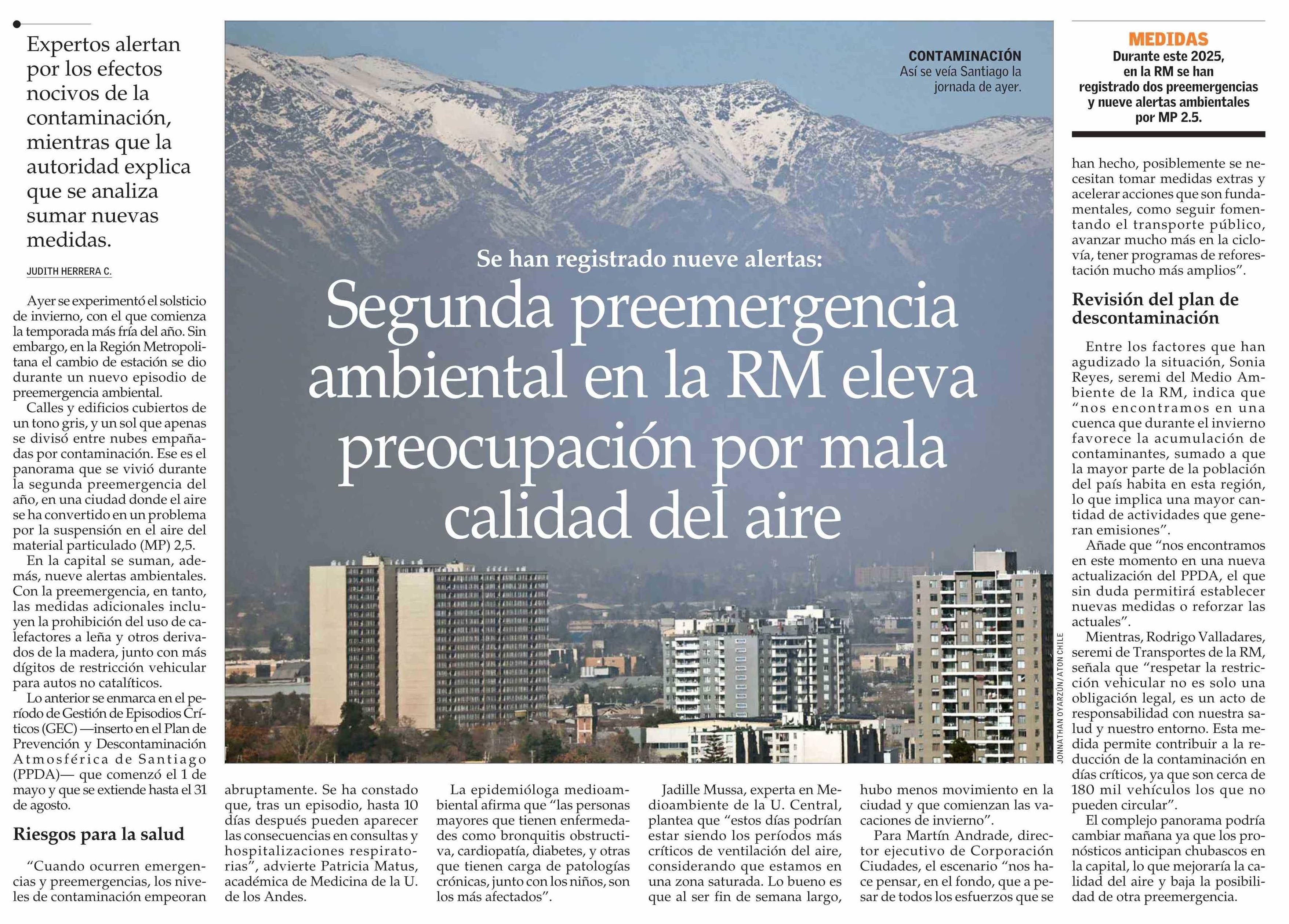 Segunda preemergencia ambiental en la RM eleva preocupación por mala calidad del aire