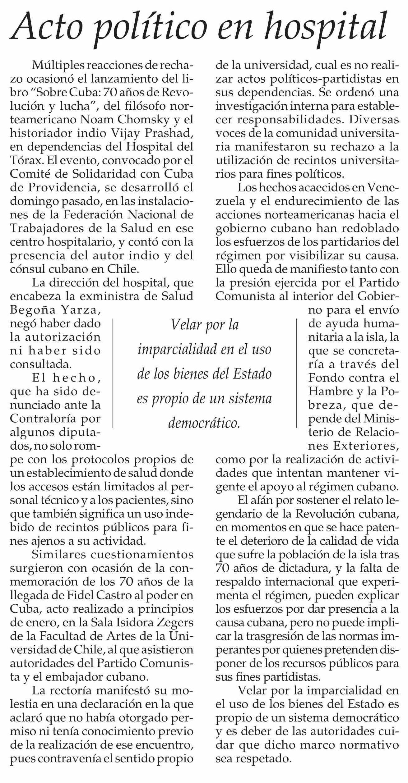 Editorial: Acto político en hospital