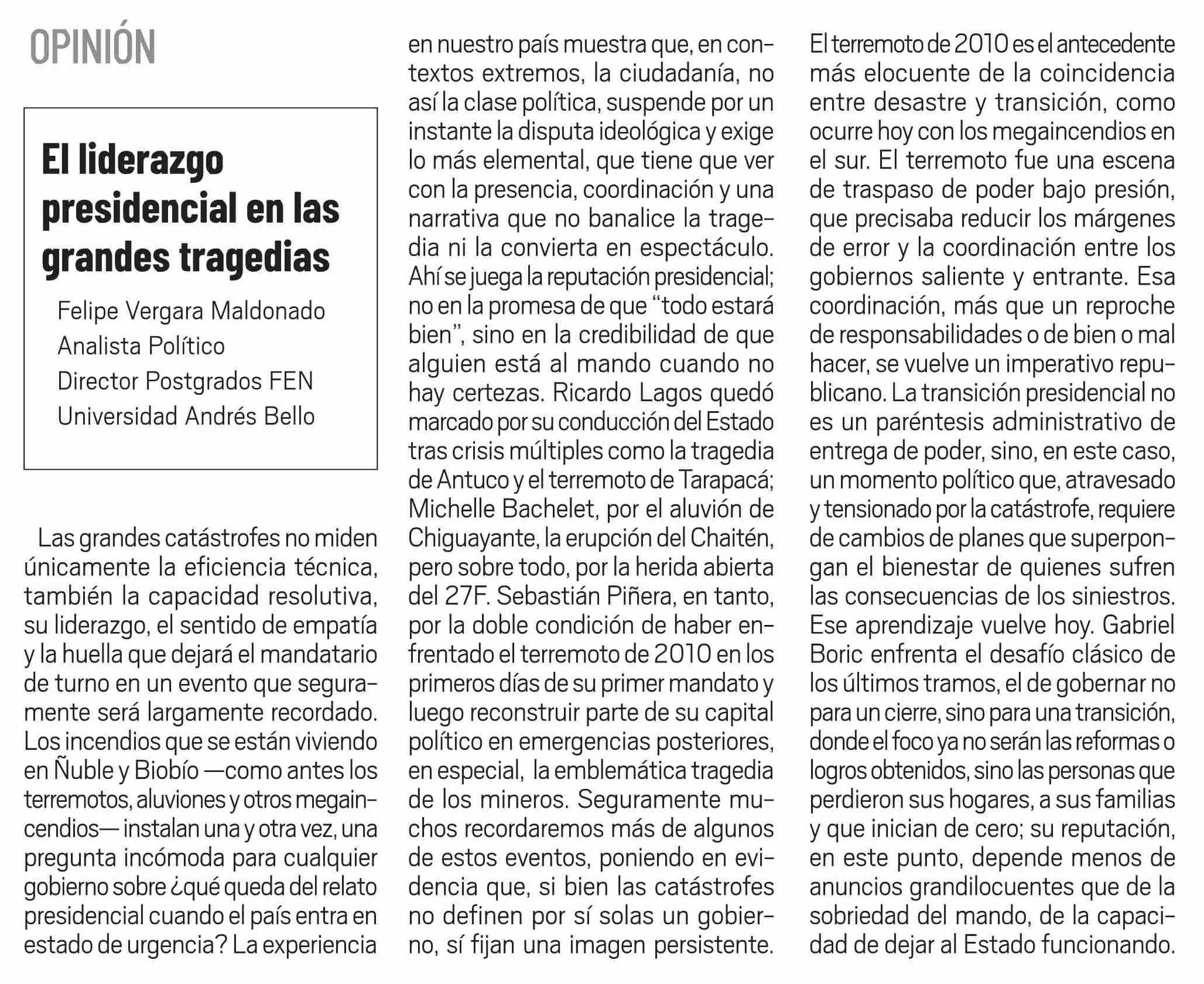 Columnas de Opinión: El liderazgo presidencial en las grandes tragedias