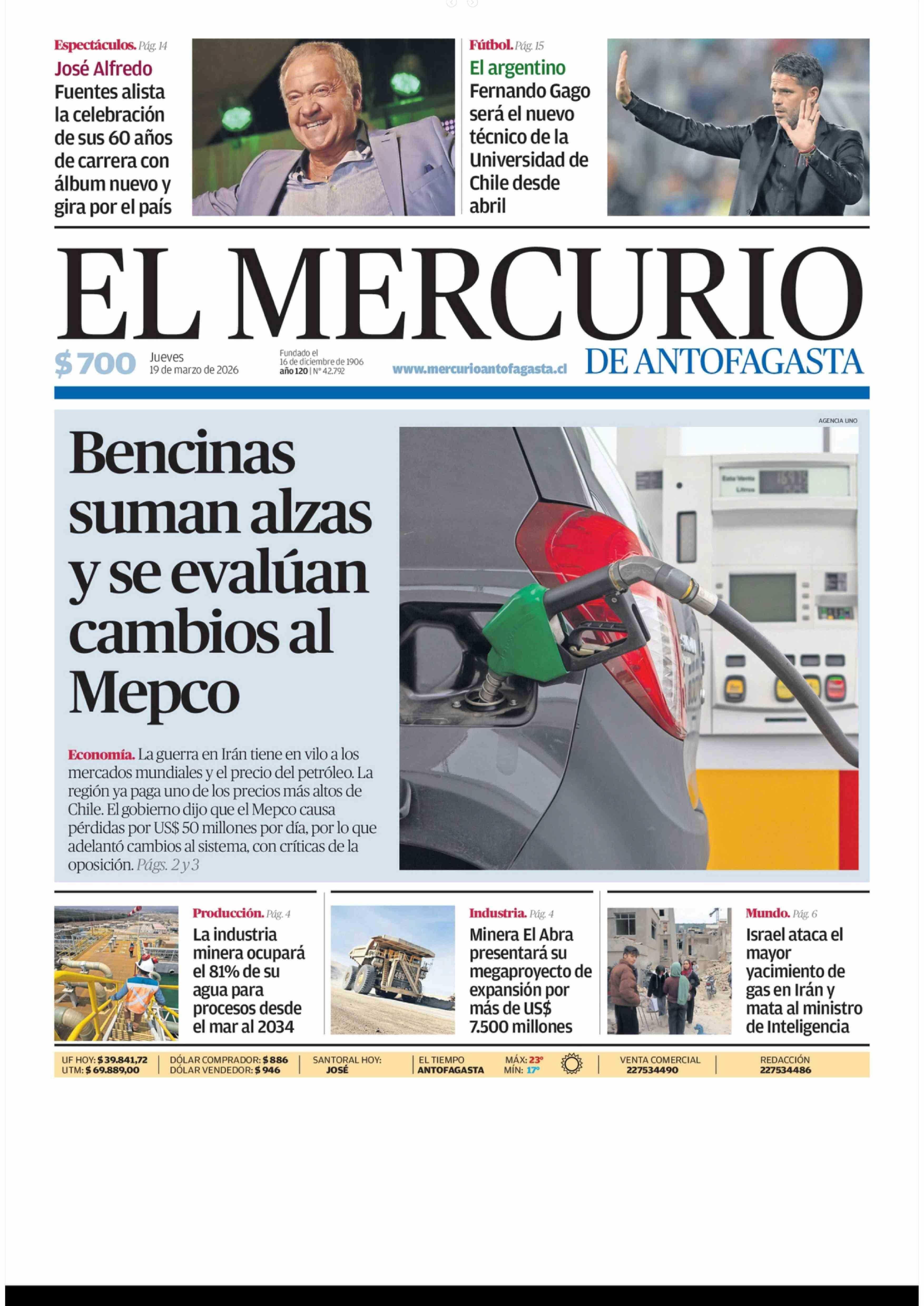 PORTADA EL MERCURIO DE ANTOFAGASTA CHILE