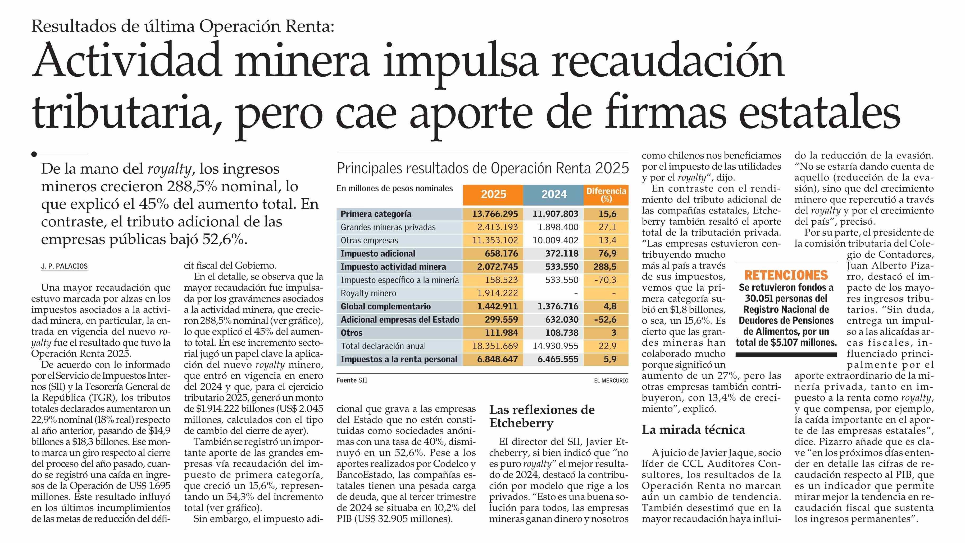Actividad minera impulsa recaudación tributaria, pero cae aporte de firmas estatales