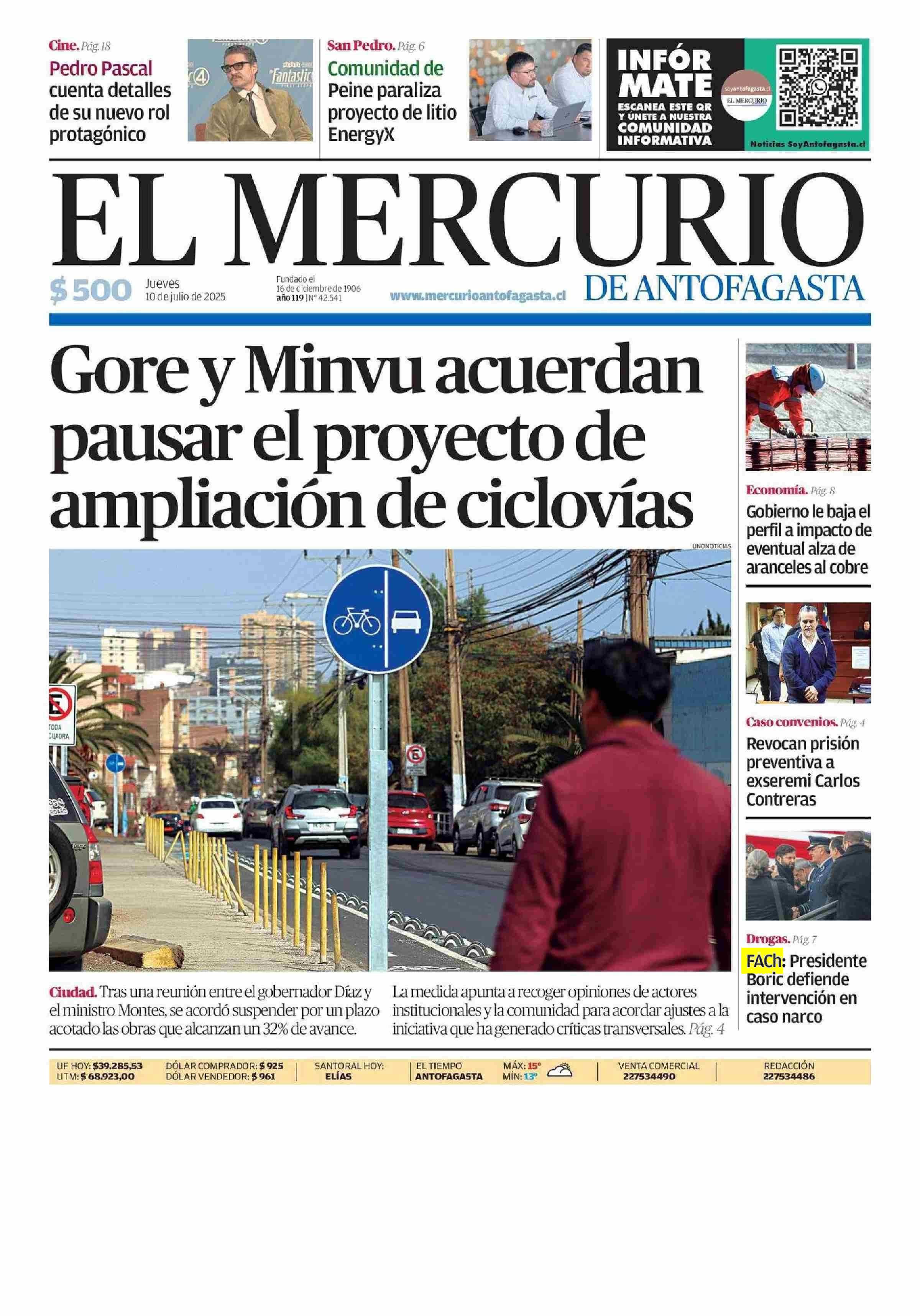 PORTADA EL MERCURIO DE ANTOFAGASTA CHILE