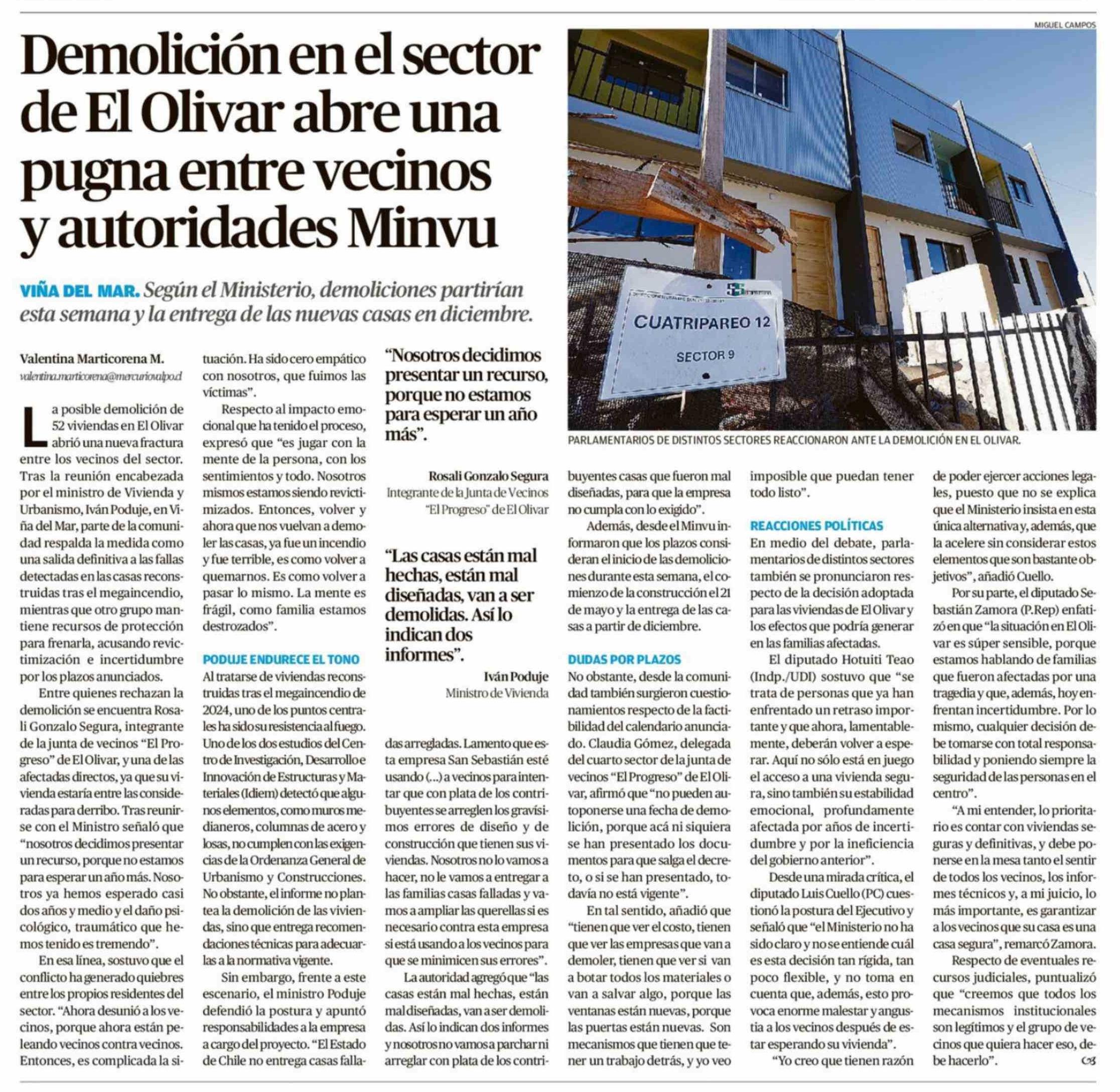 Demolición en el sector de El Olivar abre una pugna entre vecinos y autoridades Minvu