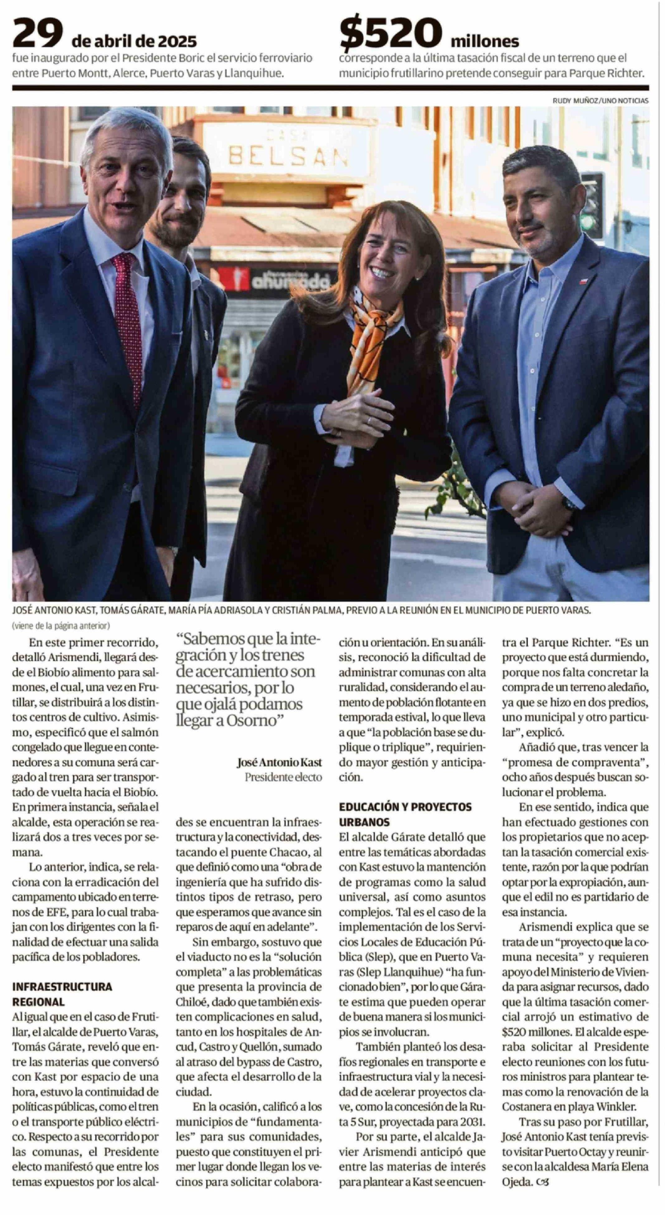 Presidente electo se declaró a favor que tren llegue a Frutillar