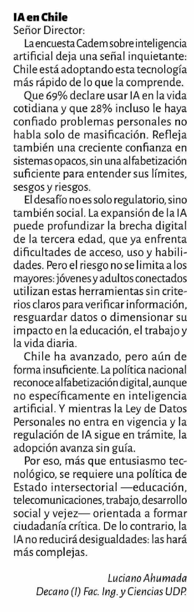 Cartas: IA en Chile