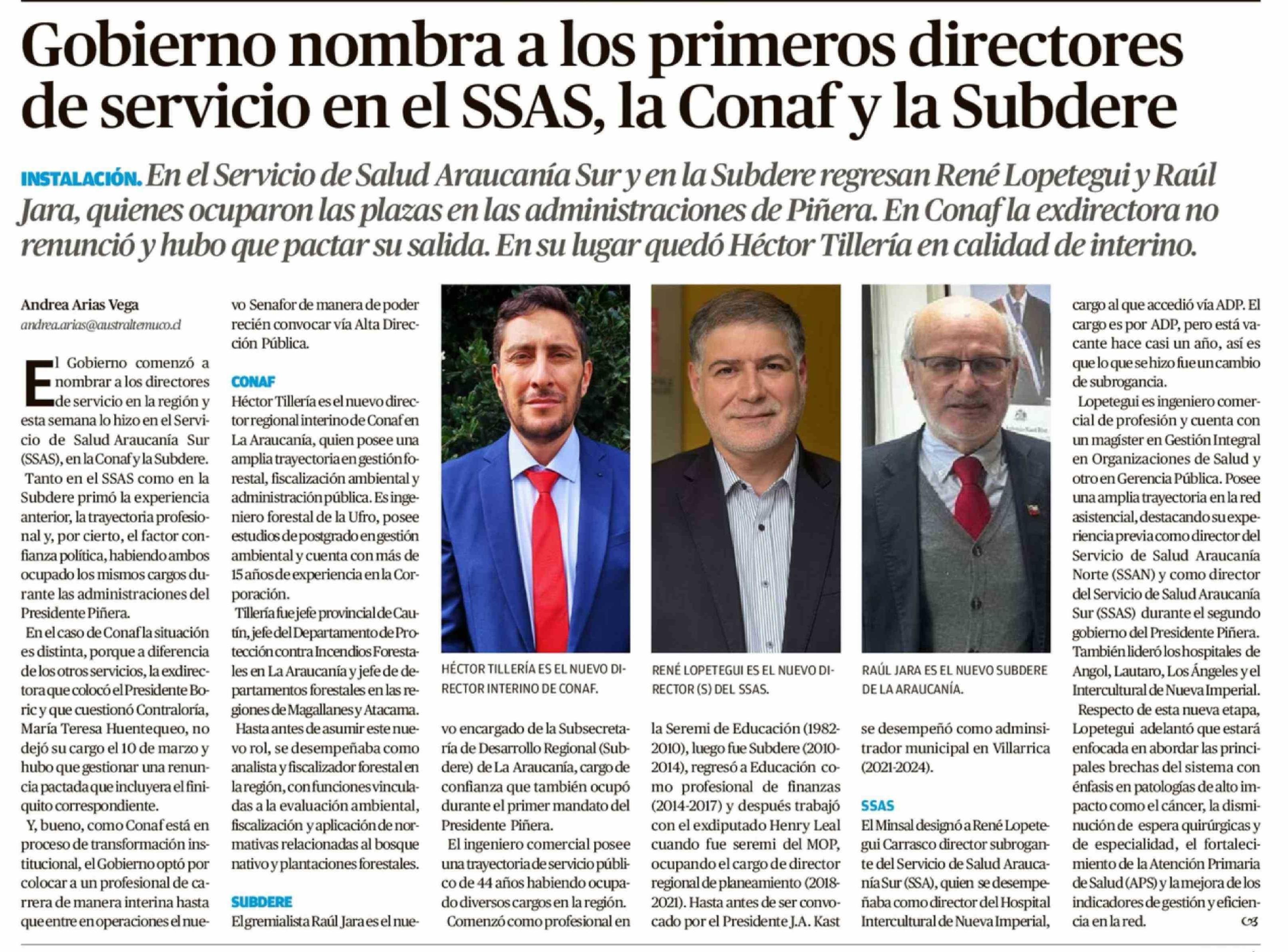 Gobierno nombra a los primeros directores de servicio en el SSAS, la Conaf y la Subdere