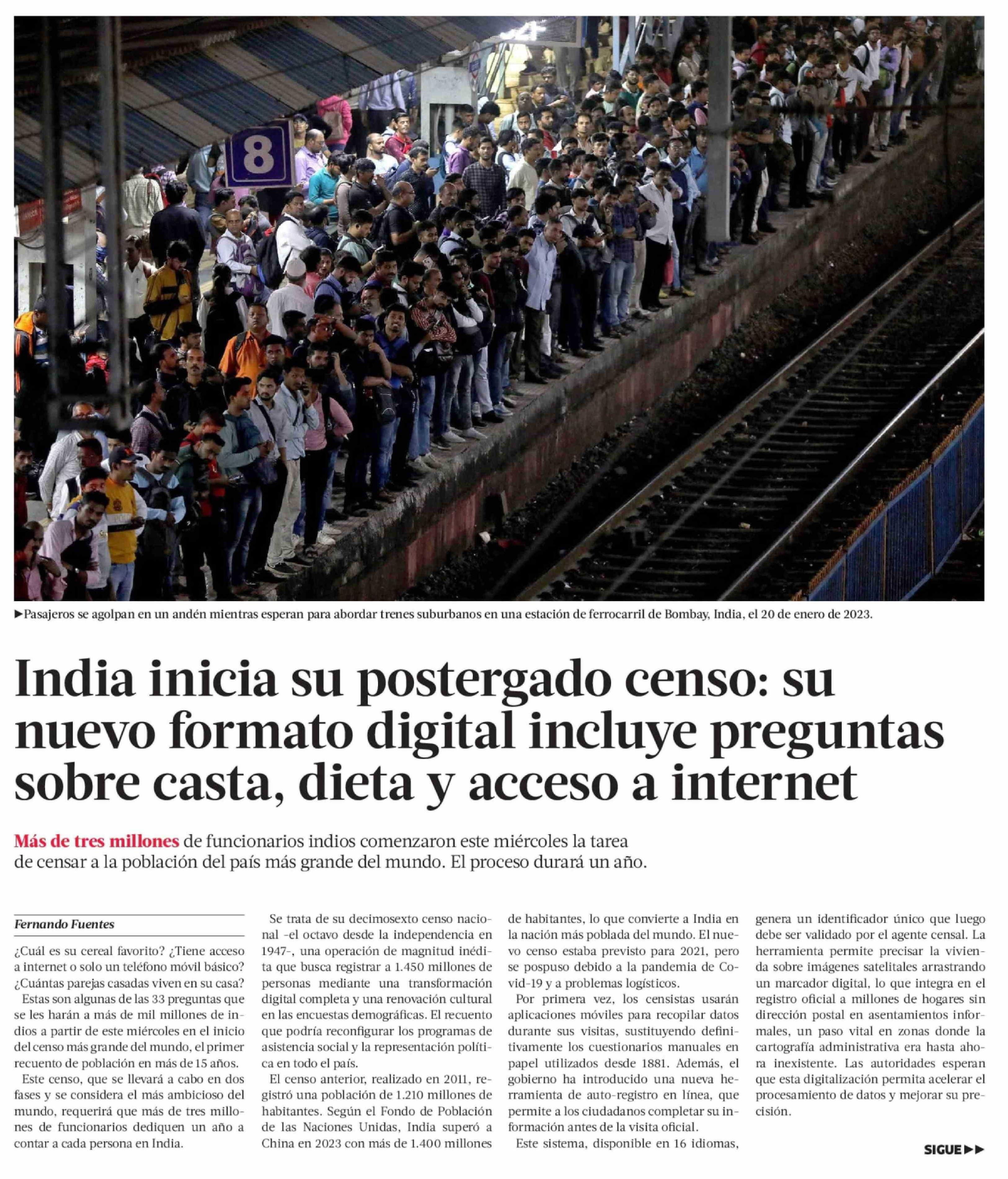 Título: India inicia su postergado censo: su nuevo formato digital incluye preguntas sobre casta, dieta y acceso a internet