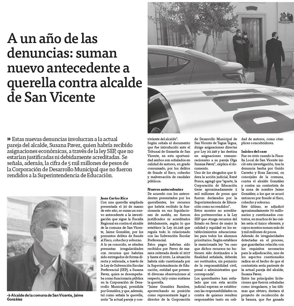 A un año de las denuncias: suman nuevo antecedente a querella contra alcalde de San Vicente