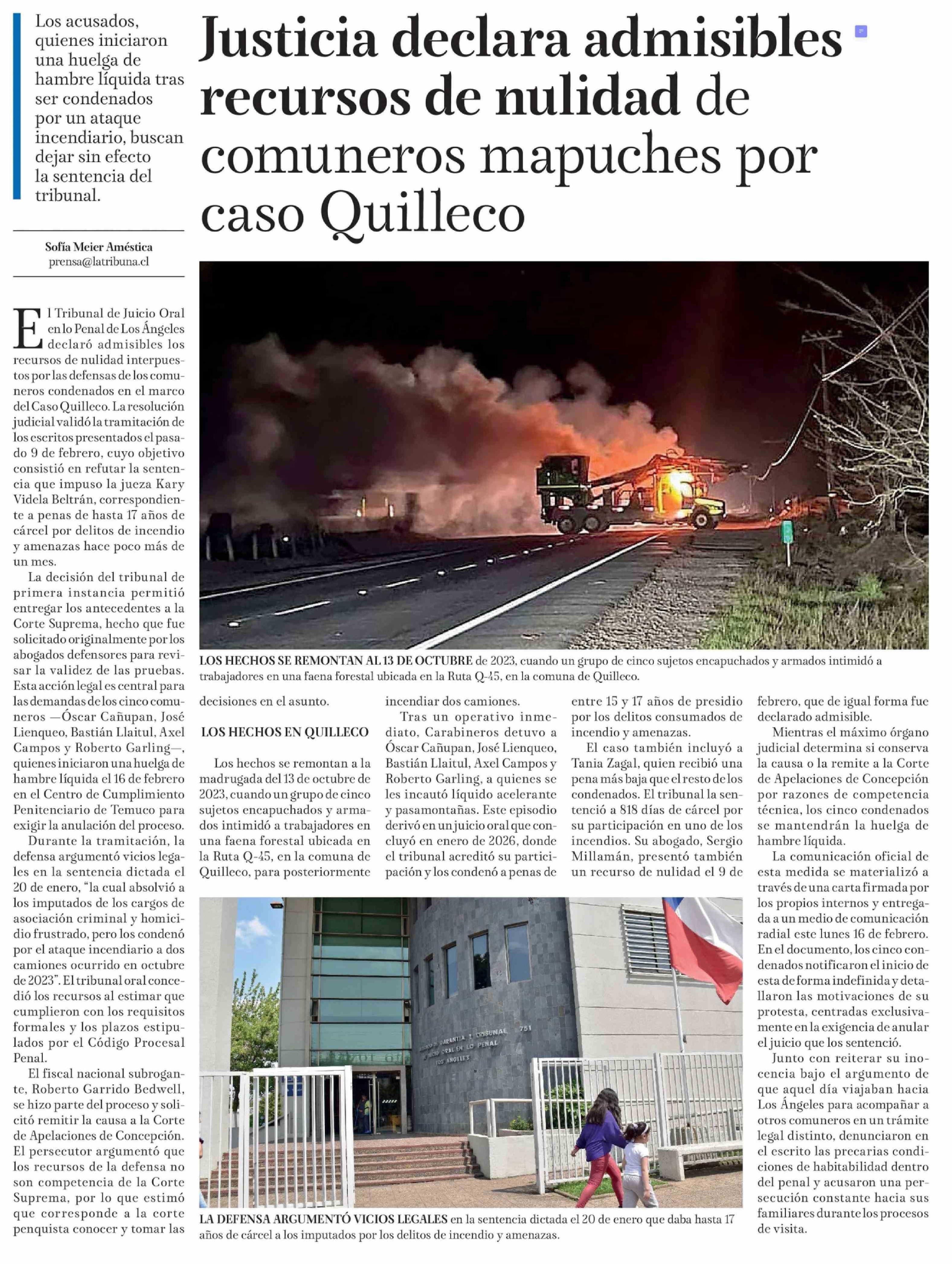 Justicia declara admisibles recursos de nulidad de comuneros mapuches por caso Quilleco