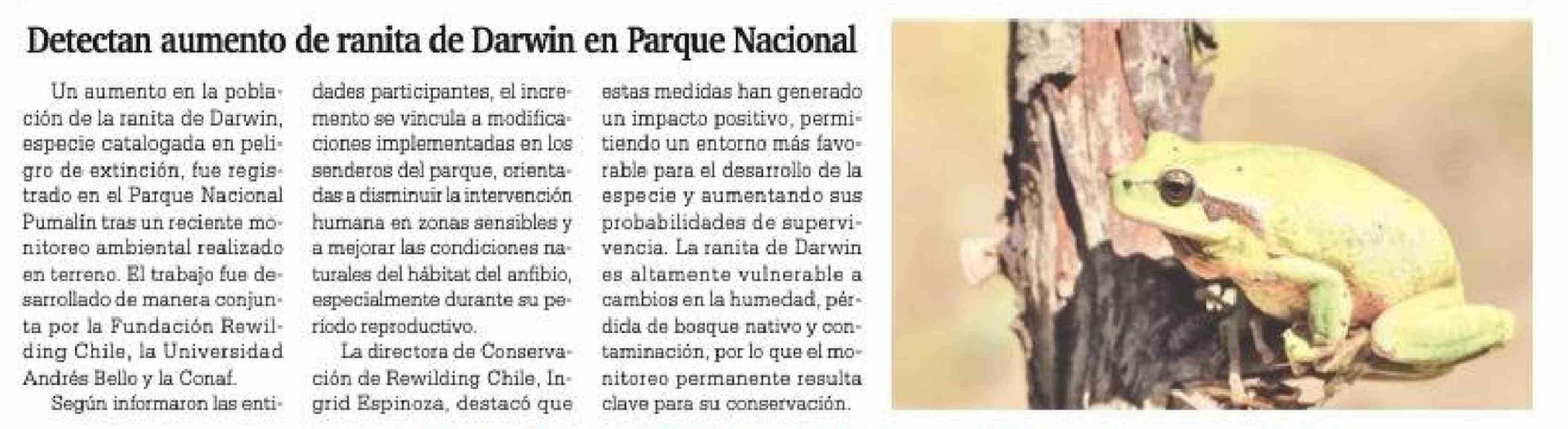 Detectan aumento de ranita de Darwin en Parque Nacional