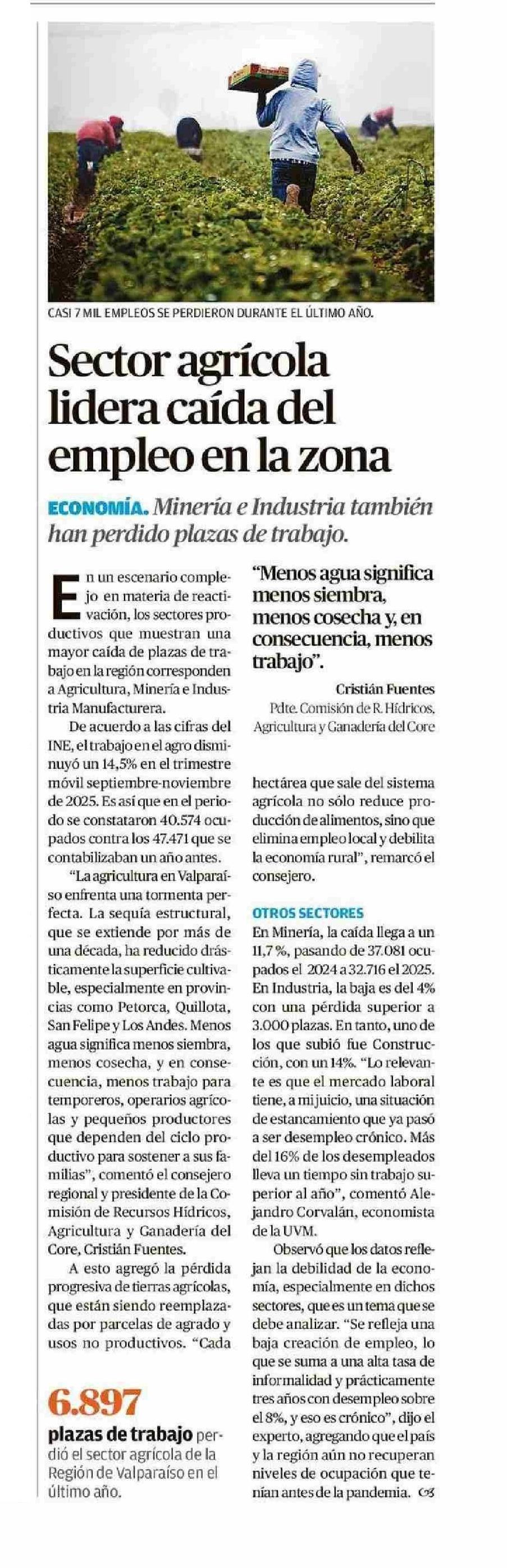 Sector agrícola lidera caída del empleo en la zona