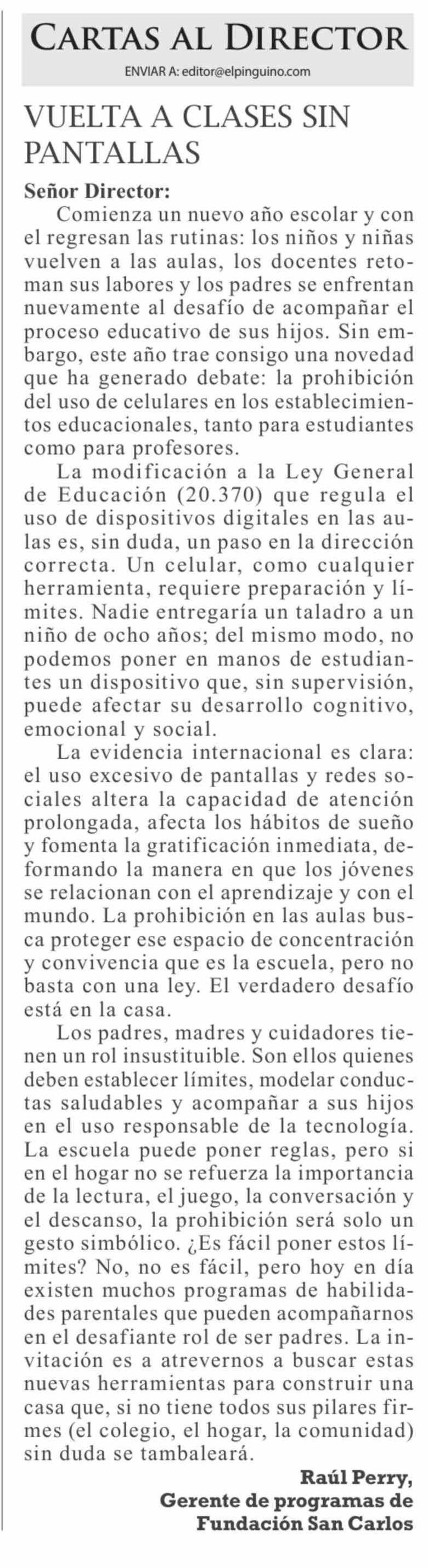 Cartas: VUELTA A CLASES SIN PANTALLAS
