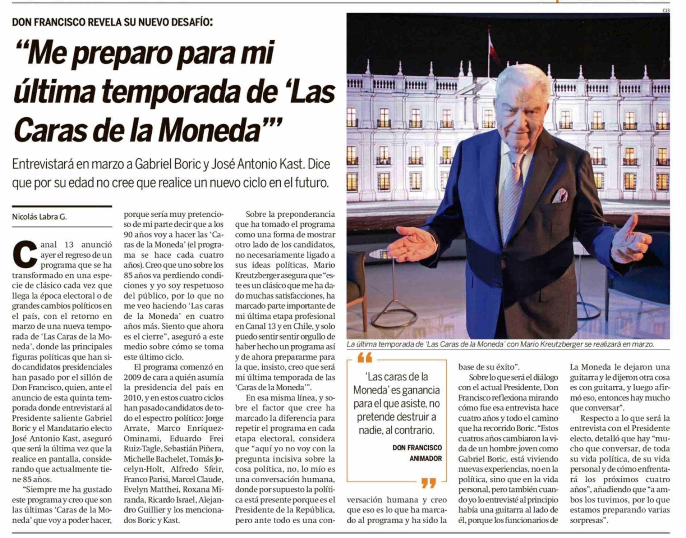 "Me preparo para mi última temporada de 'Las Caras de la Moneda"