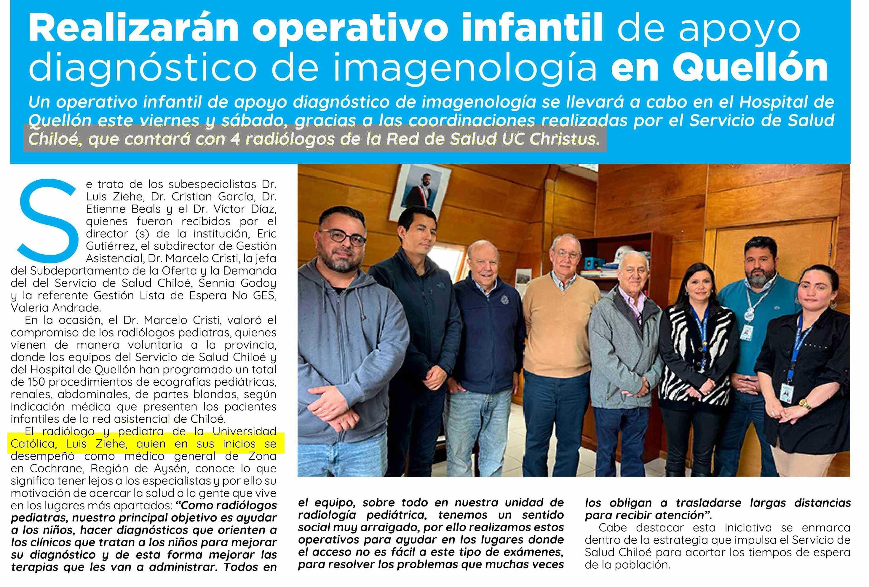 Realizarán operativo infantil de apoyo diagnóstico de imagenología en Quellón