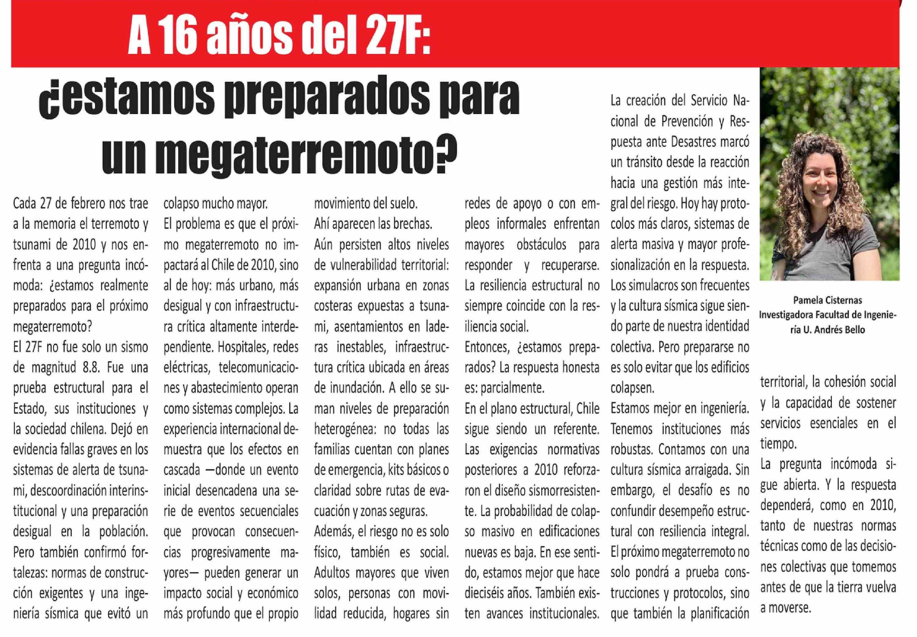 Columnas de Opinión: ¿Estamos preparados para un megaterremoto?