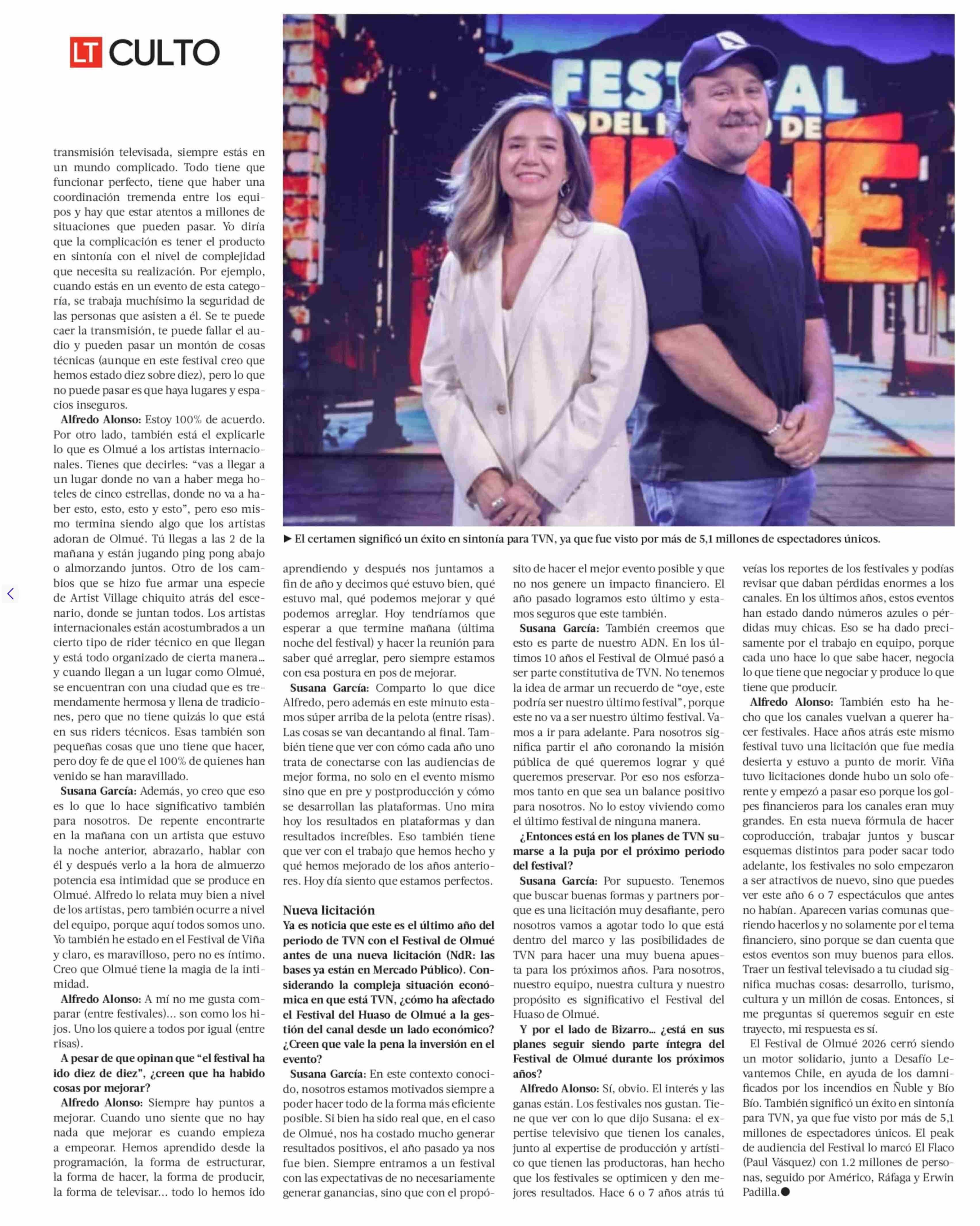 Susana García, directora ejecutiva de TVN, y Alfredo Alonso de Bizarro: "Este no va a ser nuestro último Olmué"