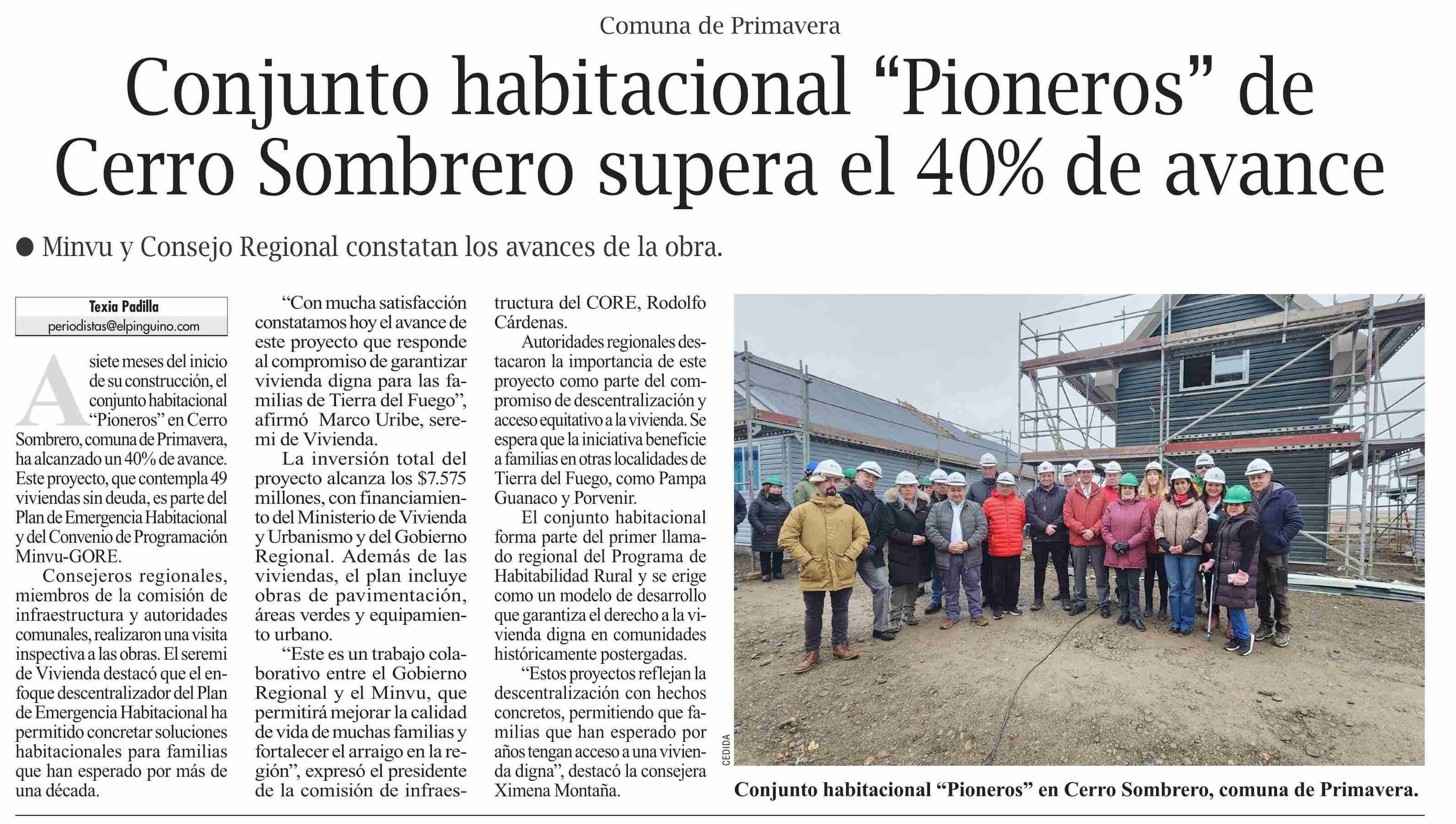 Conjunto habitacional “Pioneros” de Cerro Sombrero supera el 40% de avance