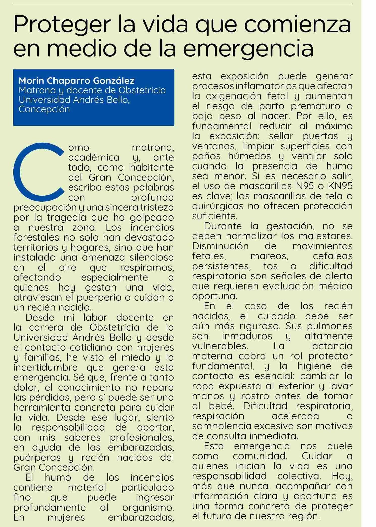 COLUMNAS DE OPINIÓN: Proteger la vida que comienza en medio de la emergencia