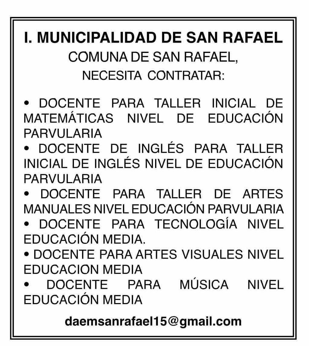 AVISO EMPLEO: I. MUNICIPALIDAD DE SAN RAFAEL