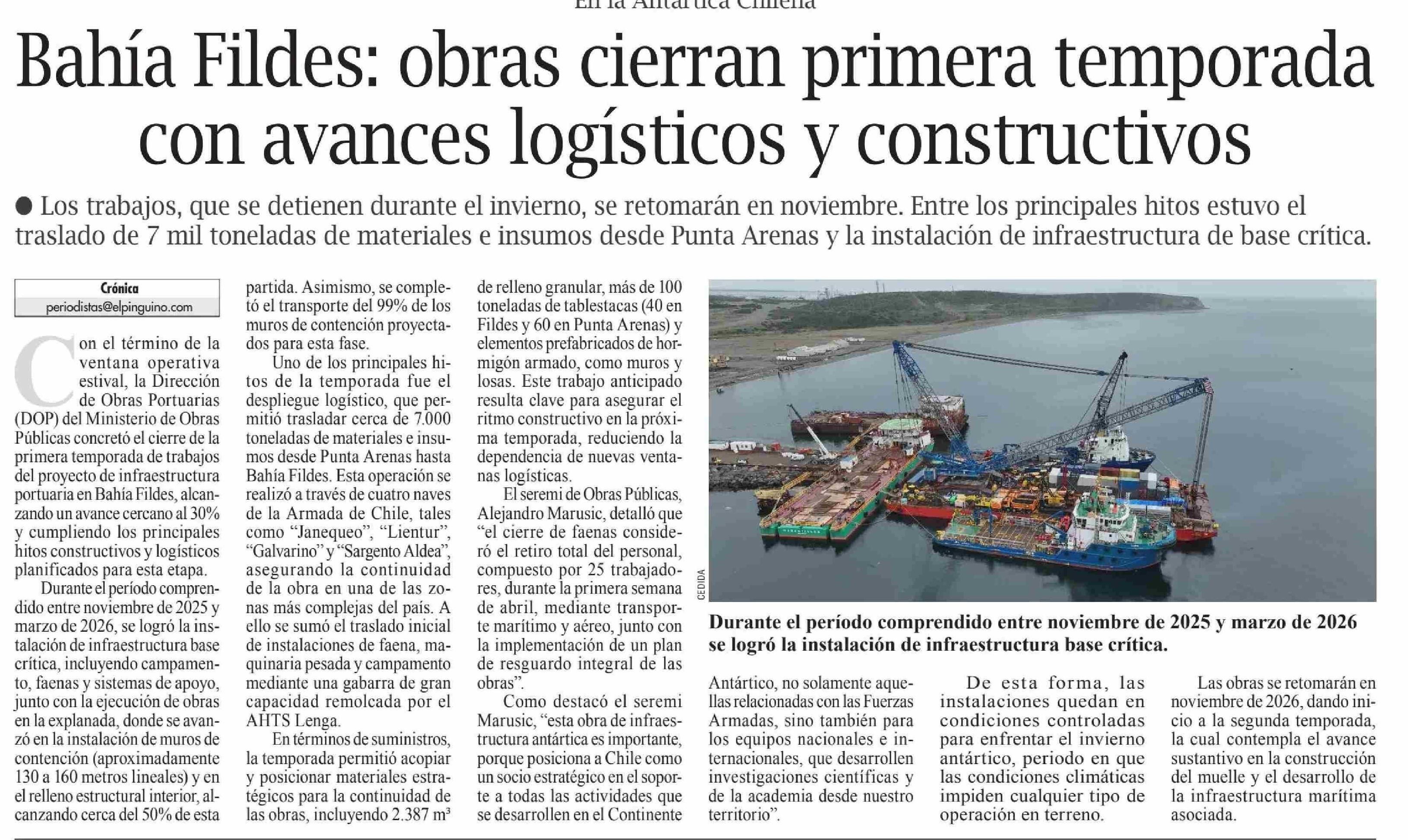 Bahía Fildes: obras cierran primera temporada con avances logísticos y constructivos