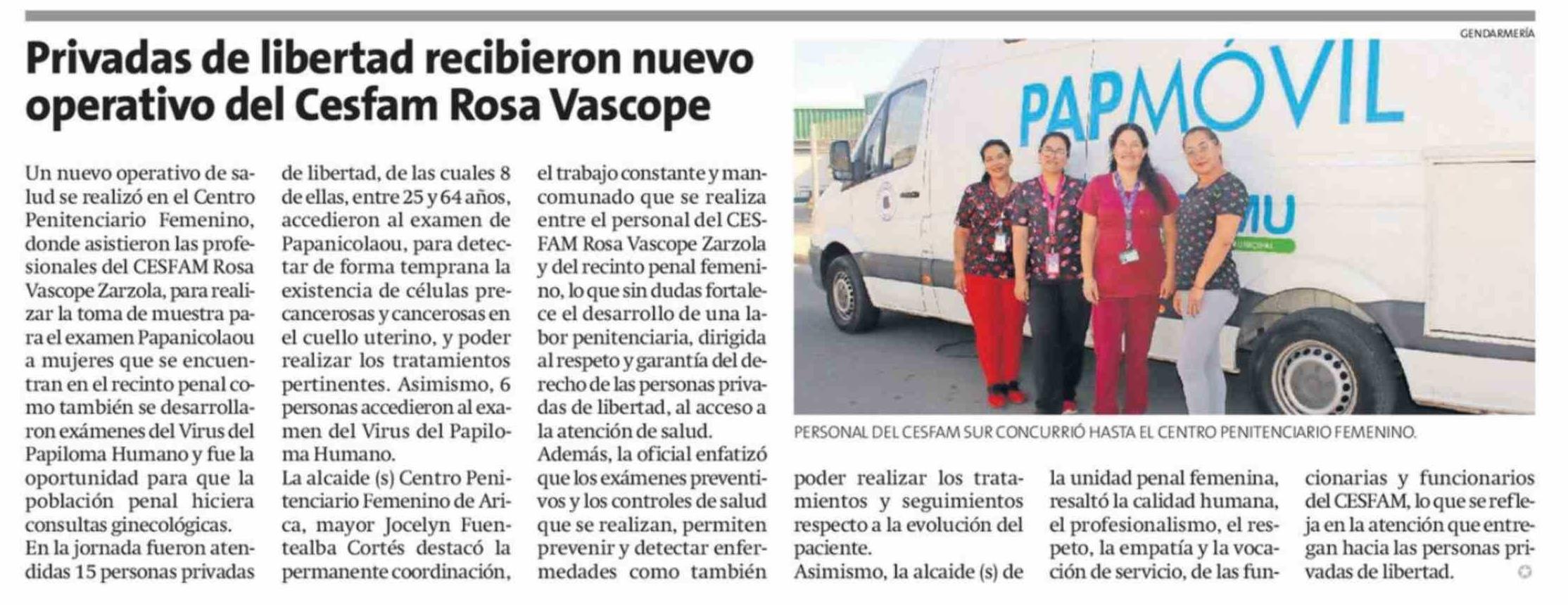Privadas de libertad recibieron nuevo operativo del Cesfam Rosa Vascope