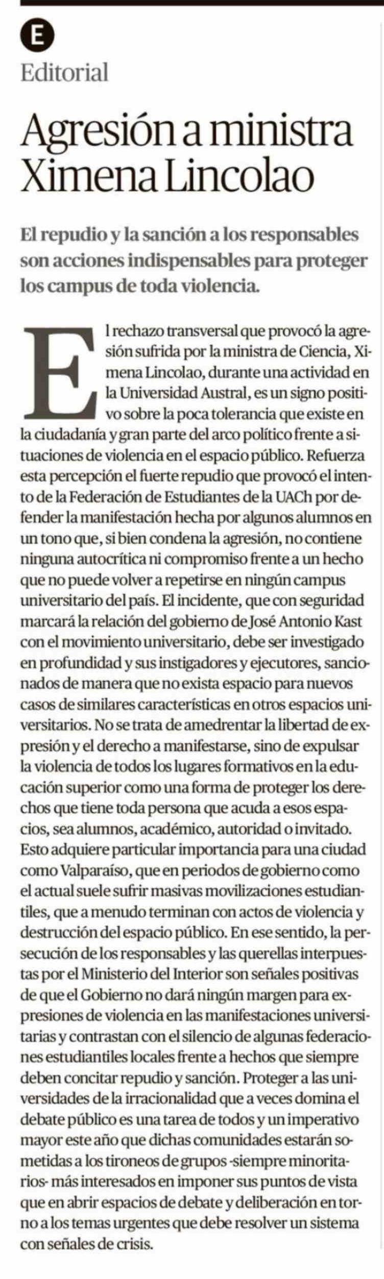 Editorial: Agresión a ministra Ximena Lincolao