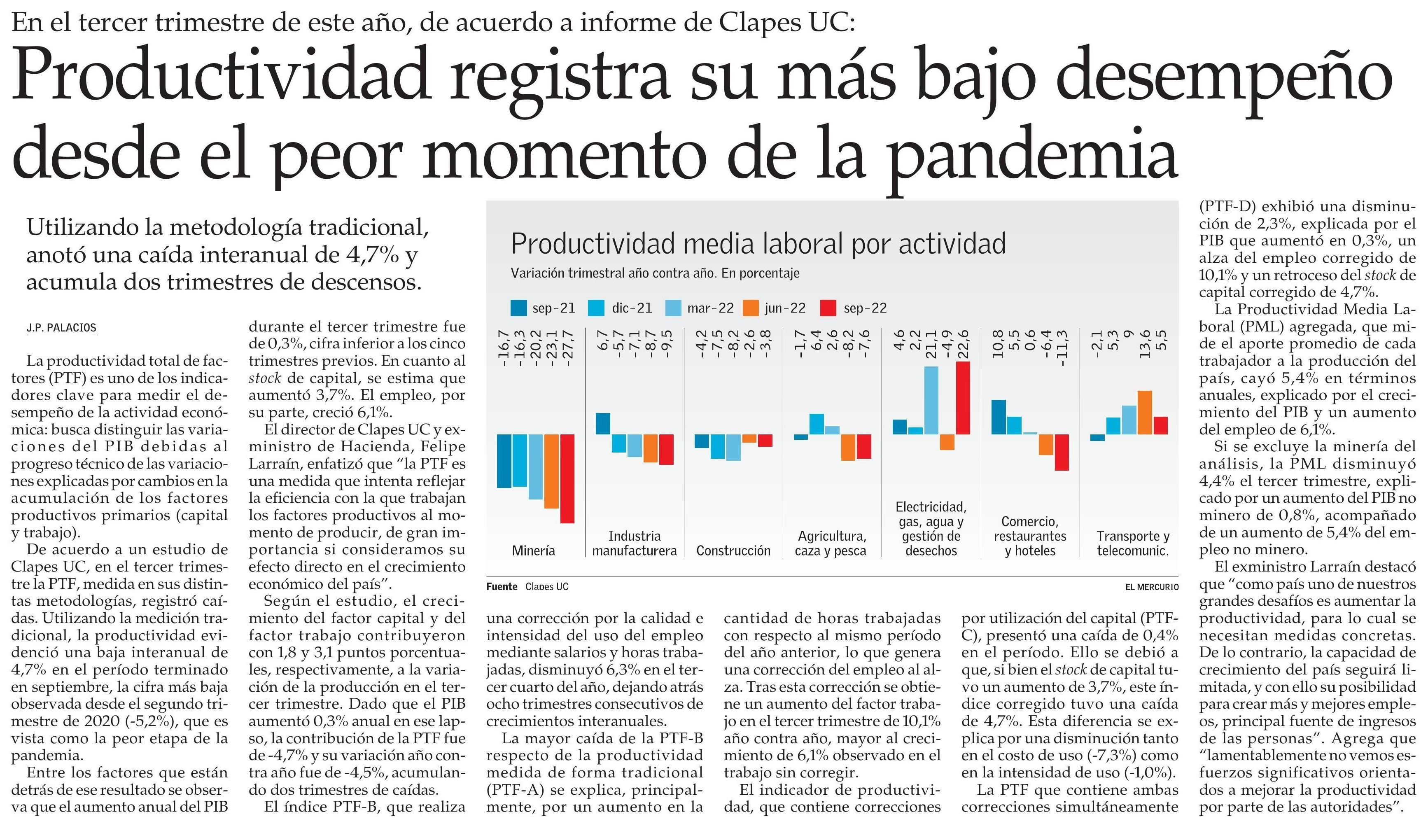Productividad registra su más bajo desempeño desde el peor momento de la pandemia