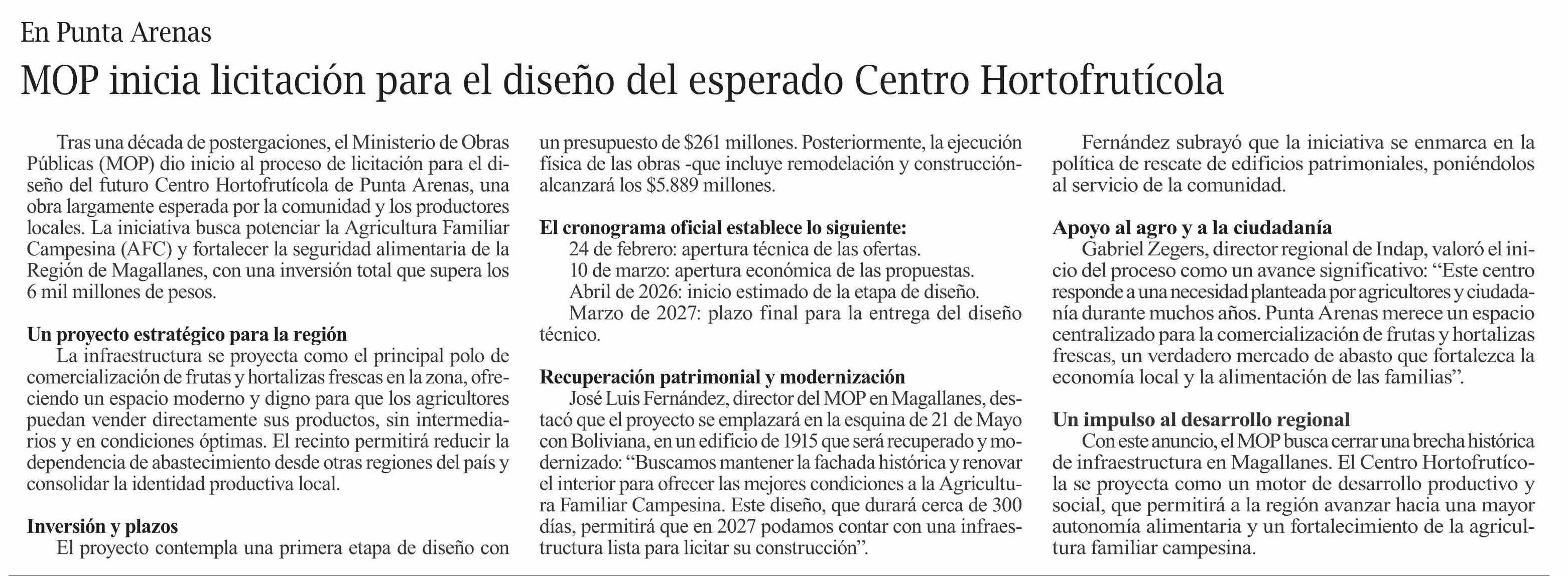 MOP inicia licitación para el diseño del esperado Centro Hortofrutícola